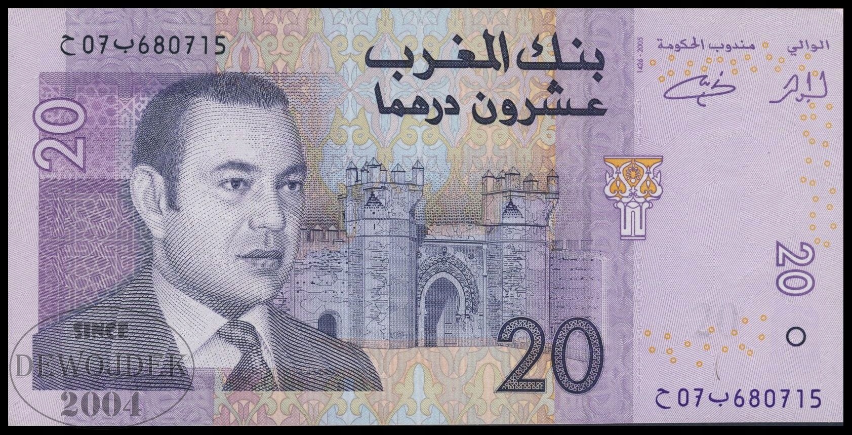 BNA - Марокко 20 Dirhams 2005 № 680715 # P68 # Подпись 16 # XF/UNC