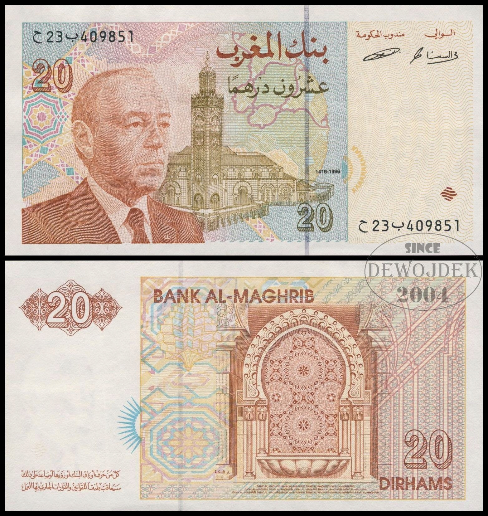 BNA - MAROKO 20 Dirhams 1996 # P67a # PODPIS 12 # XF+