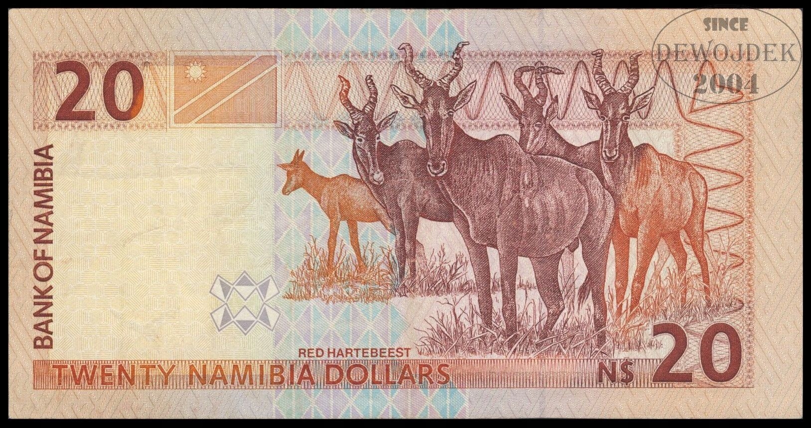 BNA - Namibia 20 долларов 1996 г. J 4092274 # P5 # Rare # VF+