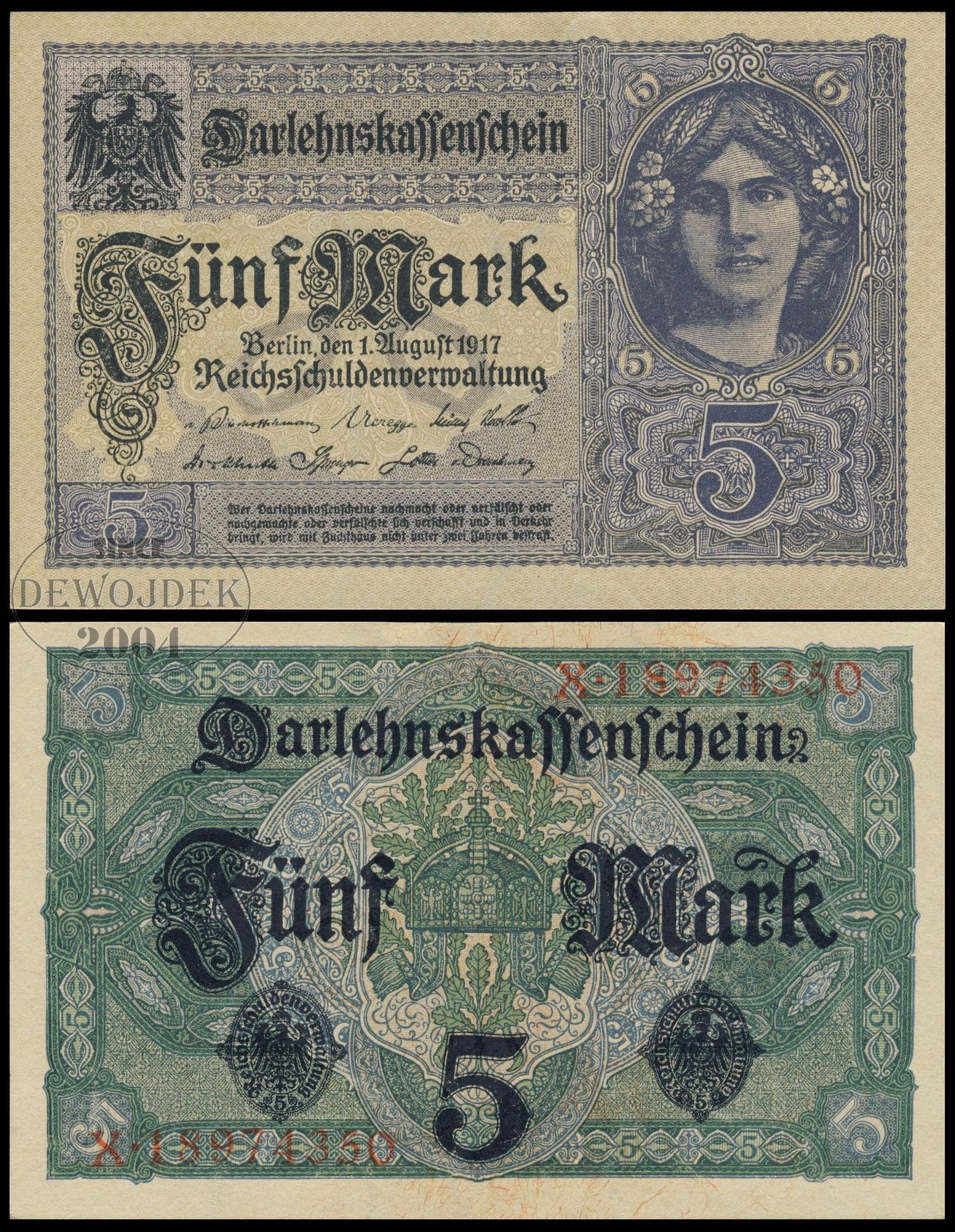 BNA - NIEMCY 5 Marek 1917 X 18974350 # 8 cyfr # P56b # UNC-