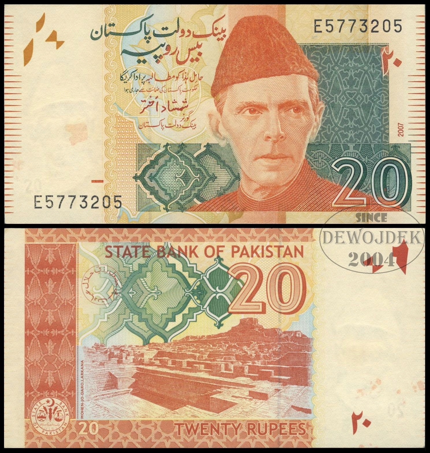 BNA - PAKISTAN 20 Rupii 2007 E 5773205 # P55a # pierwsza emisja # XF-