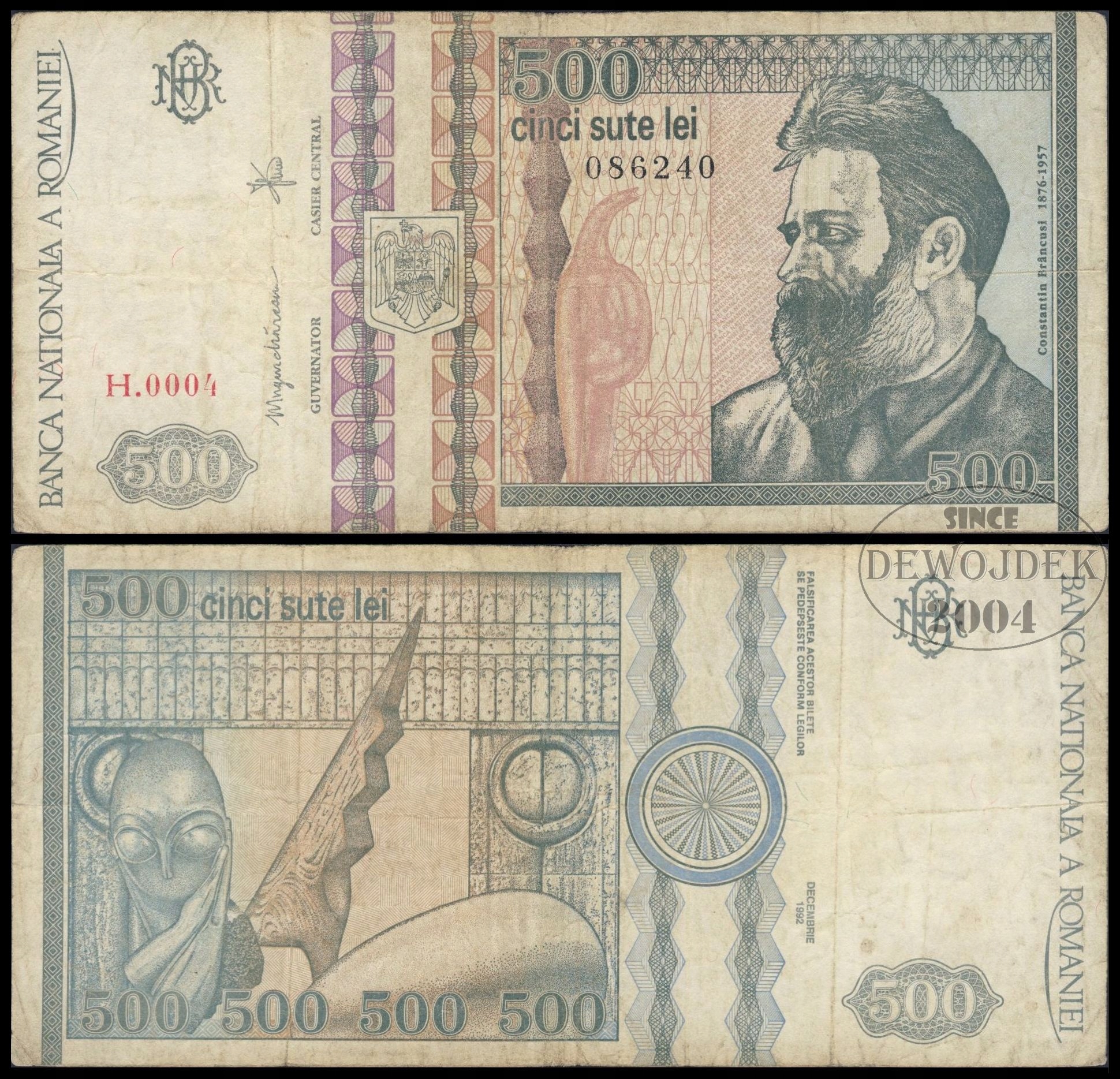 BNA - РУМЫНИЯ 500 лей 1992 г. H.004 086240 # P101a # РЕДКАЯ # F/VF