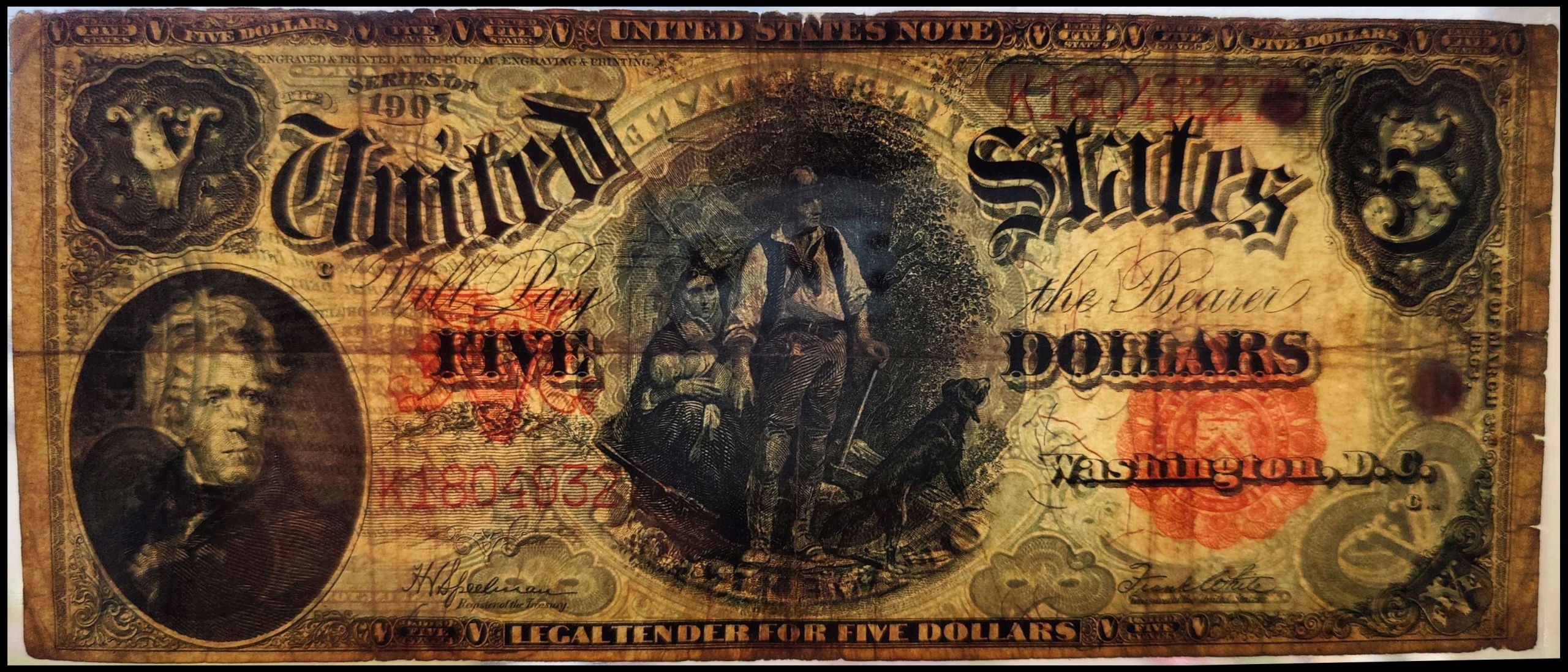 BNA - USA 5 долларов долларов 1907 $ K 18049327 # F91 # Speelman, White # F+