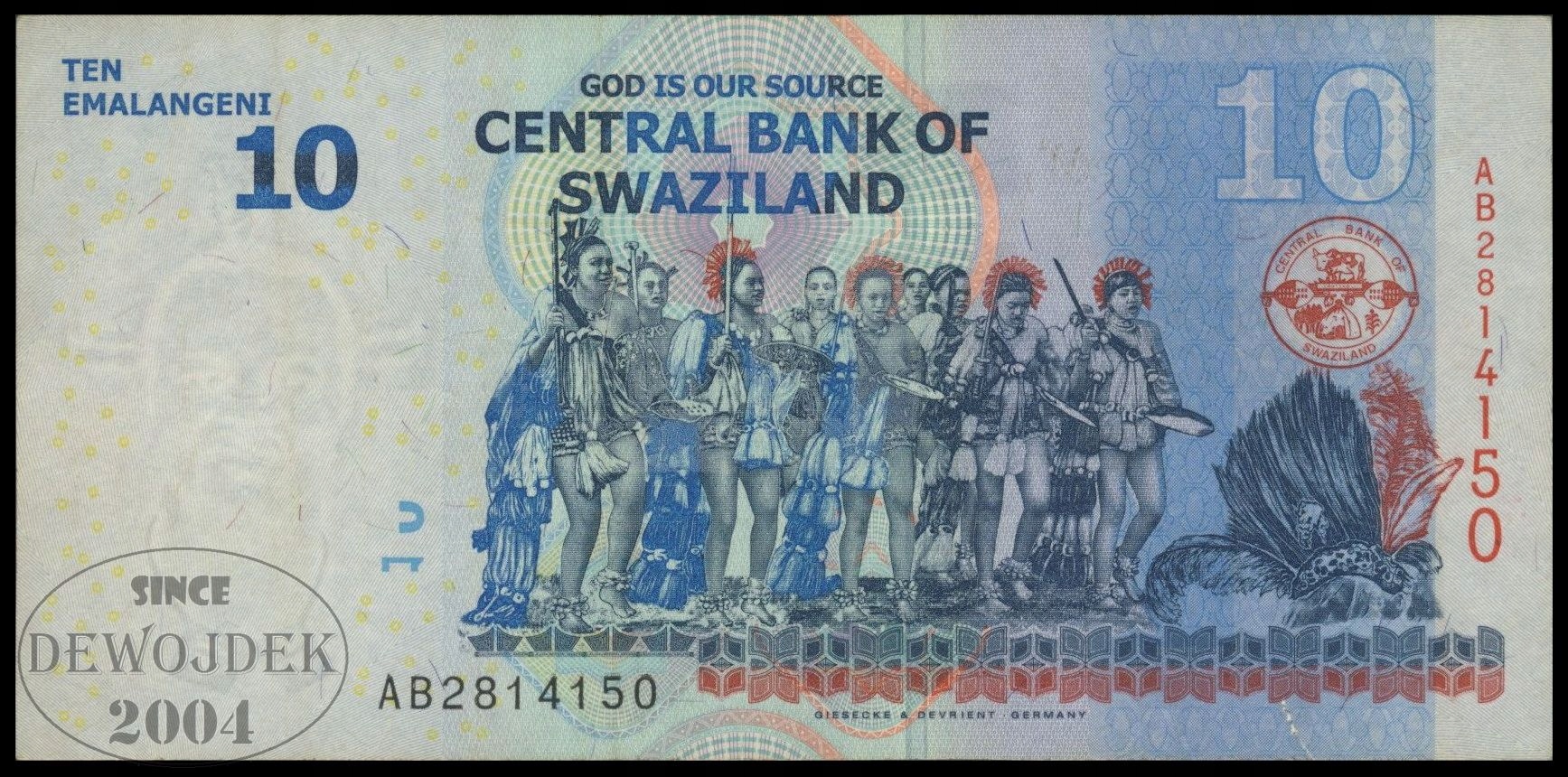 BNA - SWIASI 10 Emalangeni 2014 AB 2814150 # P36b # VF+
