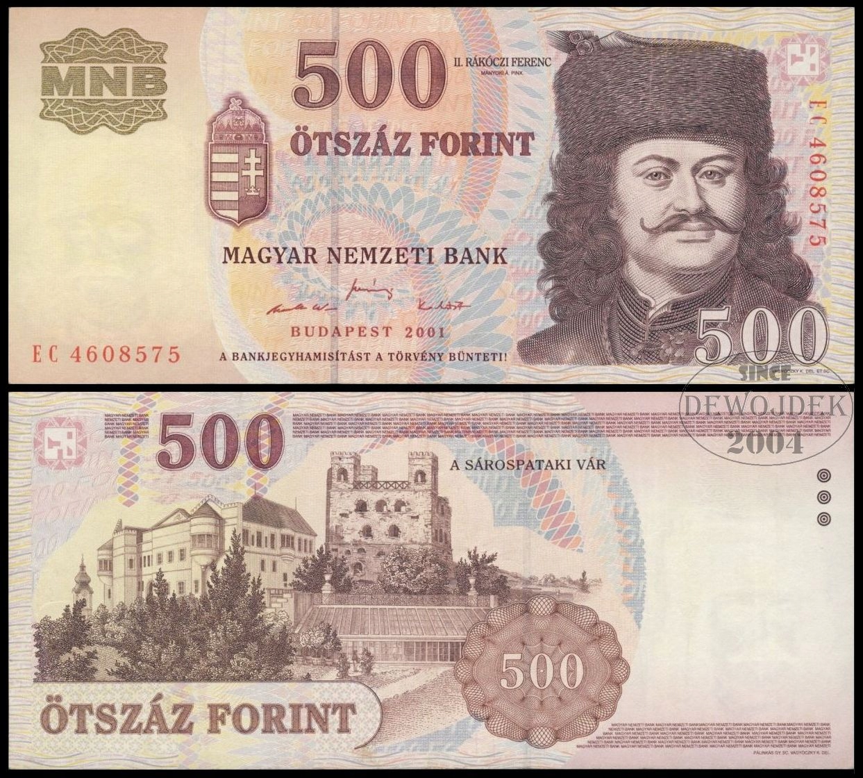 BNA - WĘGRY 500 Forintów 2001 EC # P188a # VF/XF
