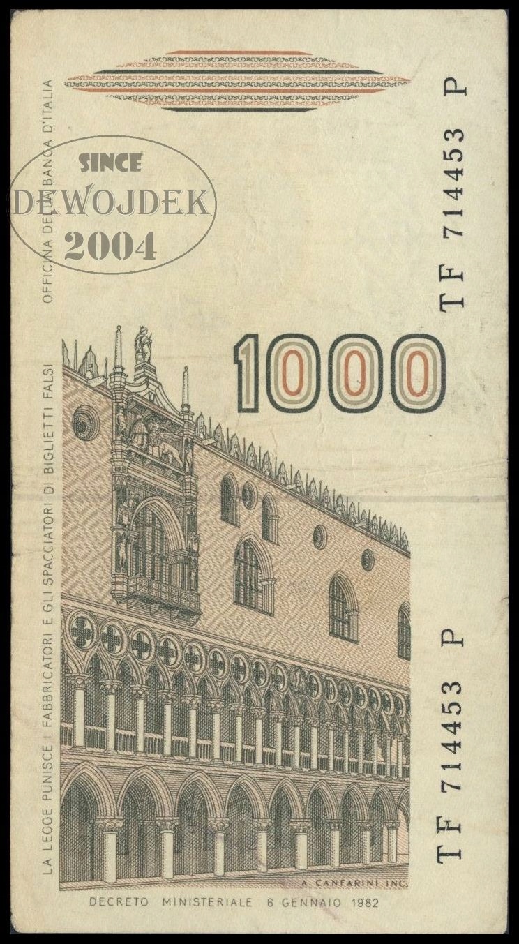 BNA - WŁOCHY 1000 Lirów 1982 TF-P # 109b # podpisy CIAMPI SPEZIALI # VF-