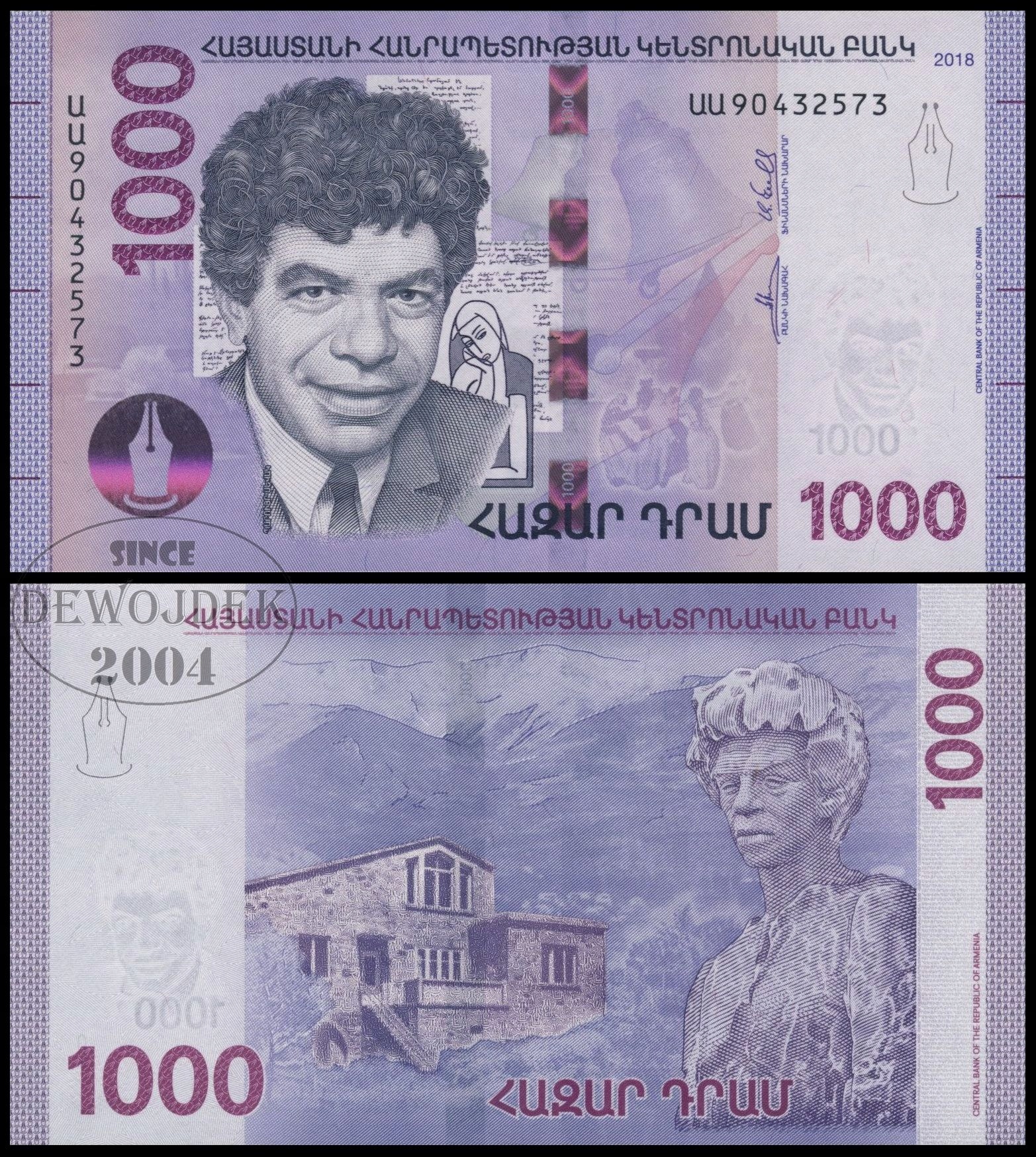BNB - ARMENIA 1000 Dram 2018 AA 90432573 # P61 # UNC