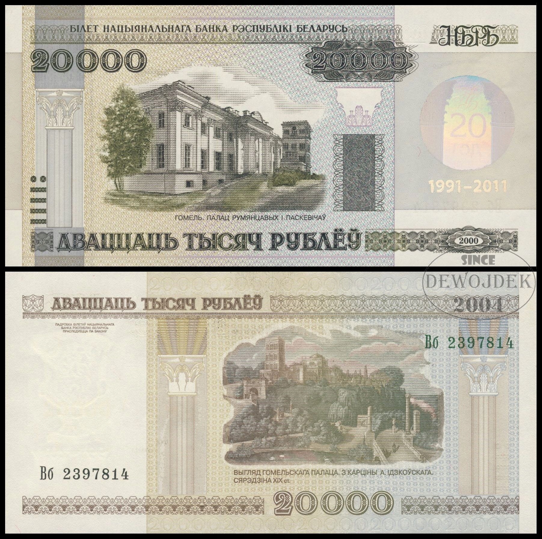BNB - BIAŁORUŚ 20000 Rubli 2000 / 2011 Вб # FOLDER # P35 # 20 LAT BANKU UNC