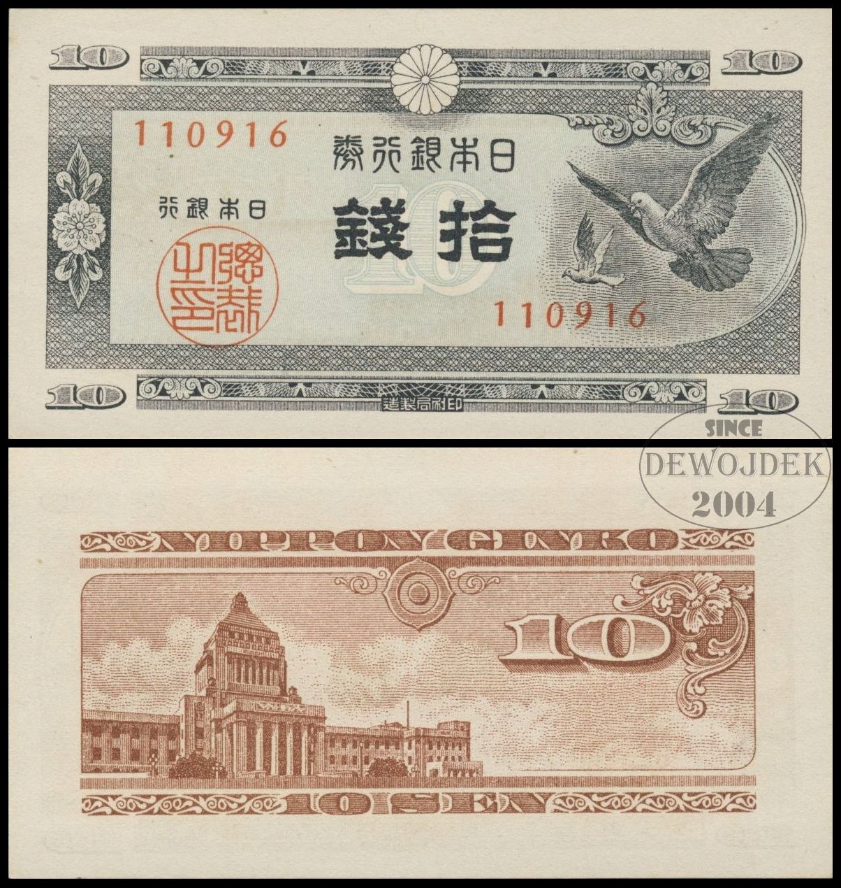 BNB - JAPONIA 10 Sen 1947 nr 110916 # P84 # UNC