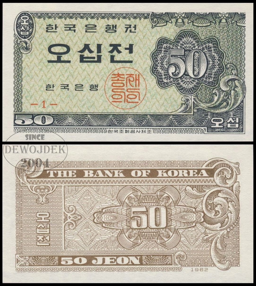 BNB - KOREA POŁUDNIOWA 50 Jeon 1962 # P29 # UNC