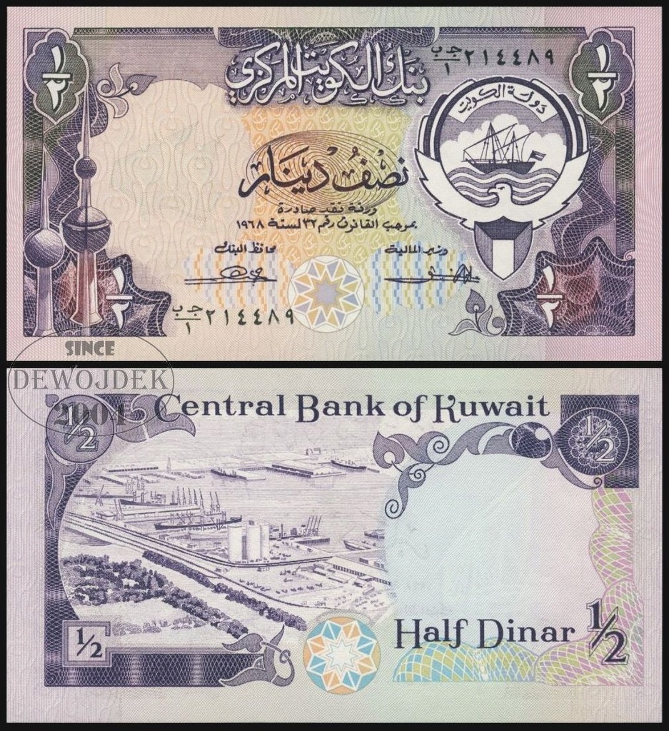 BNB - KUWEJT 1/2 Dinara 1968 / 1980 BC/1 214490 # P12a BARDZO RZADKI # UNC