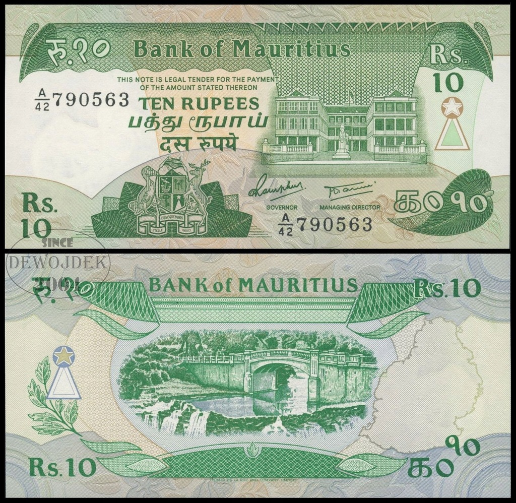 BNB - MAURITIUS 10 Rupii 1985 A/42 790563 # P35a # RZADSZY # UNC
