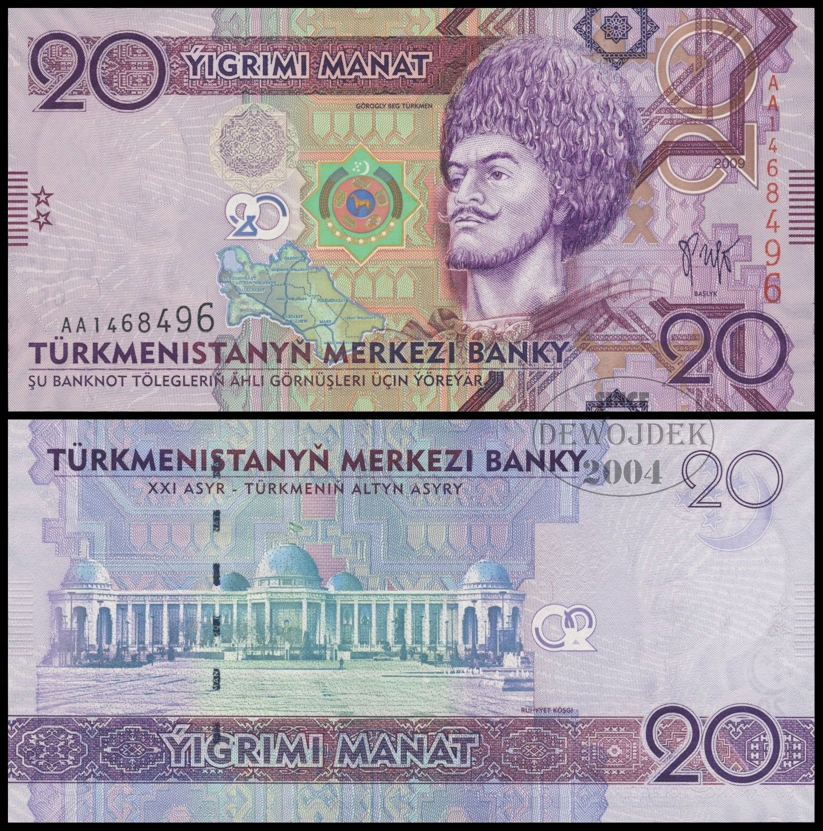 BNB - TURKMENISTAN 20 Manat 2009 AA 1468496 # P25 # UNC