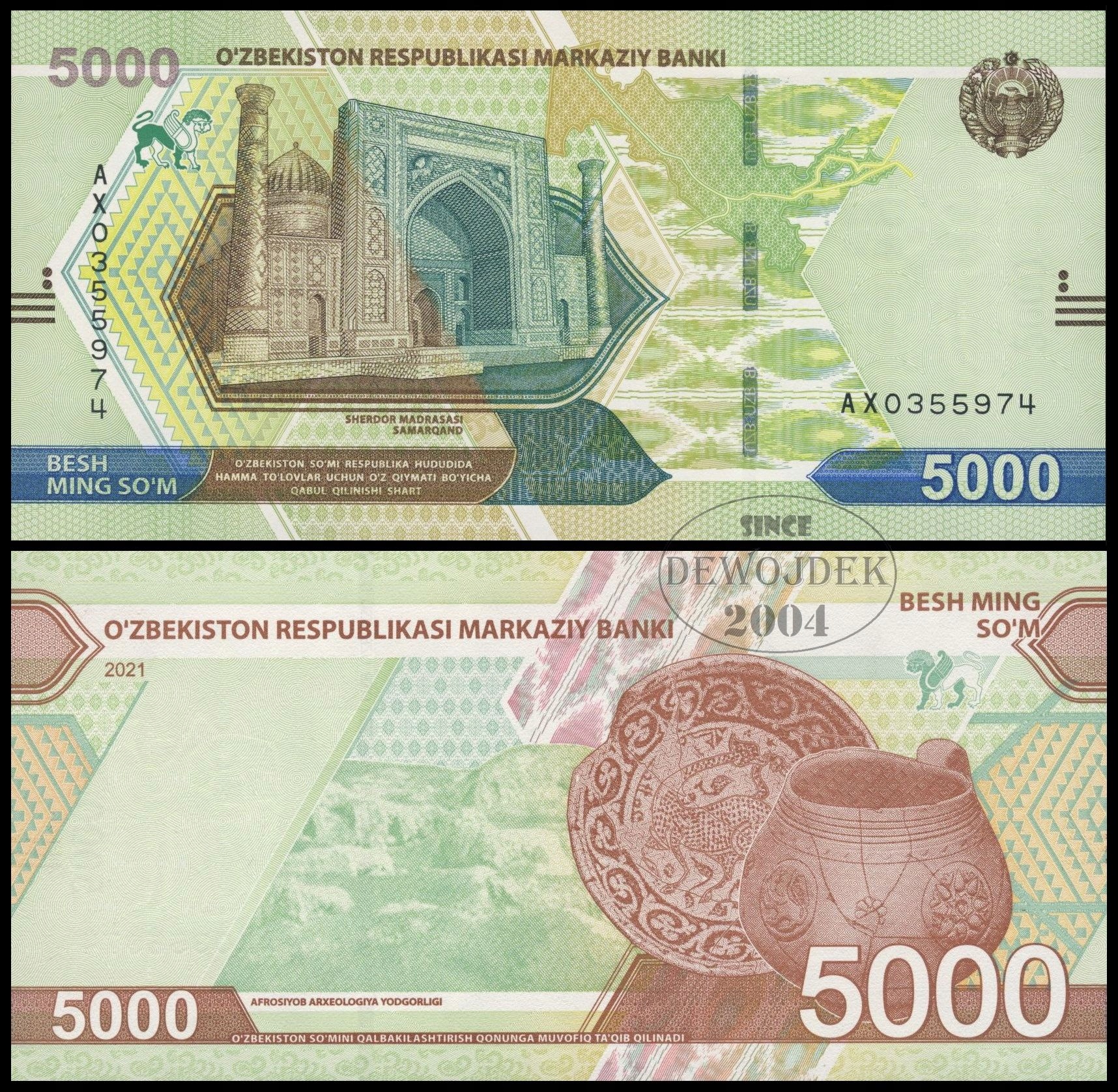 BNB - UZBEKISTAN 5000 Sum 2021 AX 0355974 # P87 # UNC