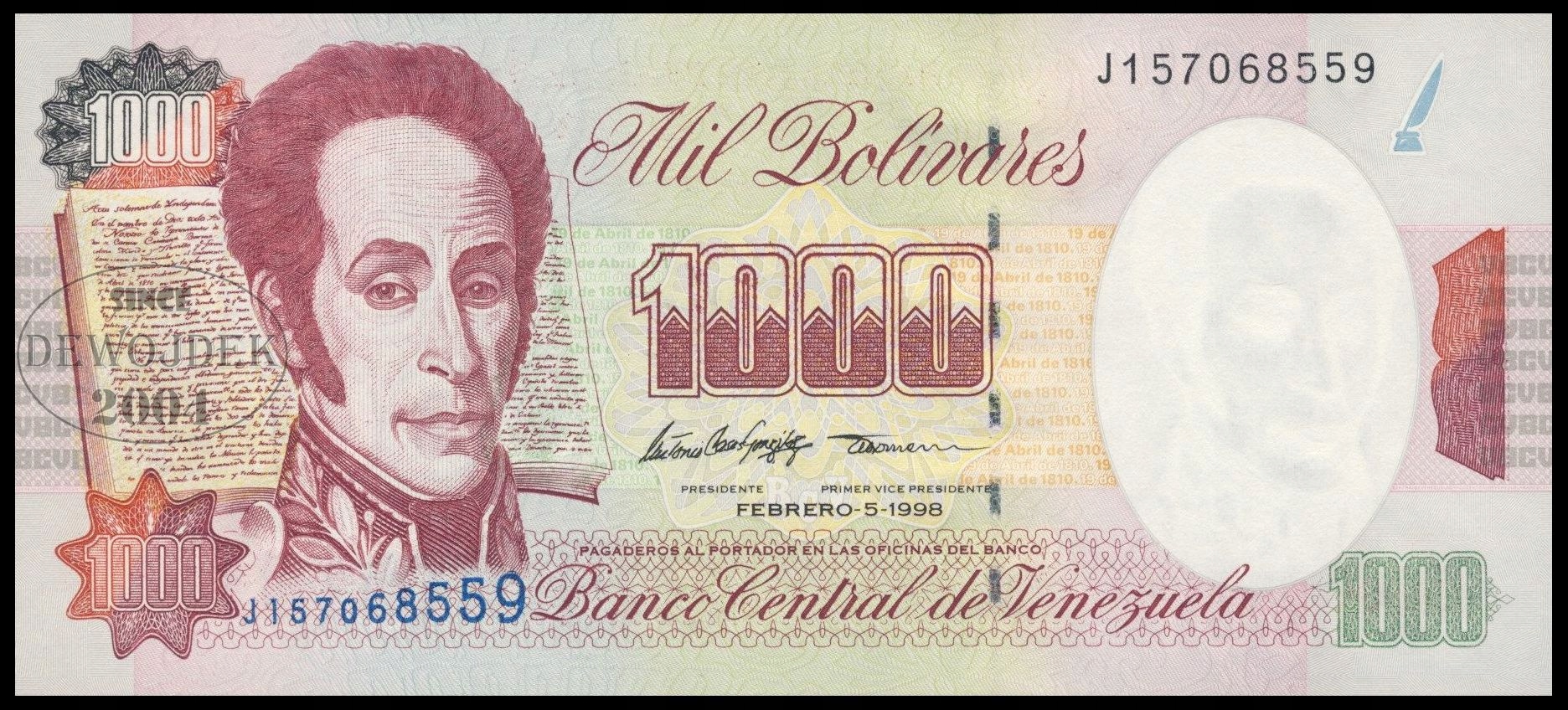 Bnb - Venezuela 1000 Bolivares 1998 февраль J 157068559 # p76c # unc