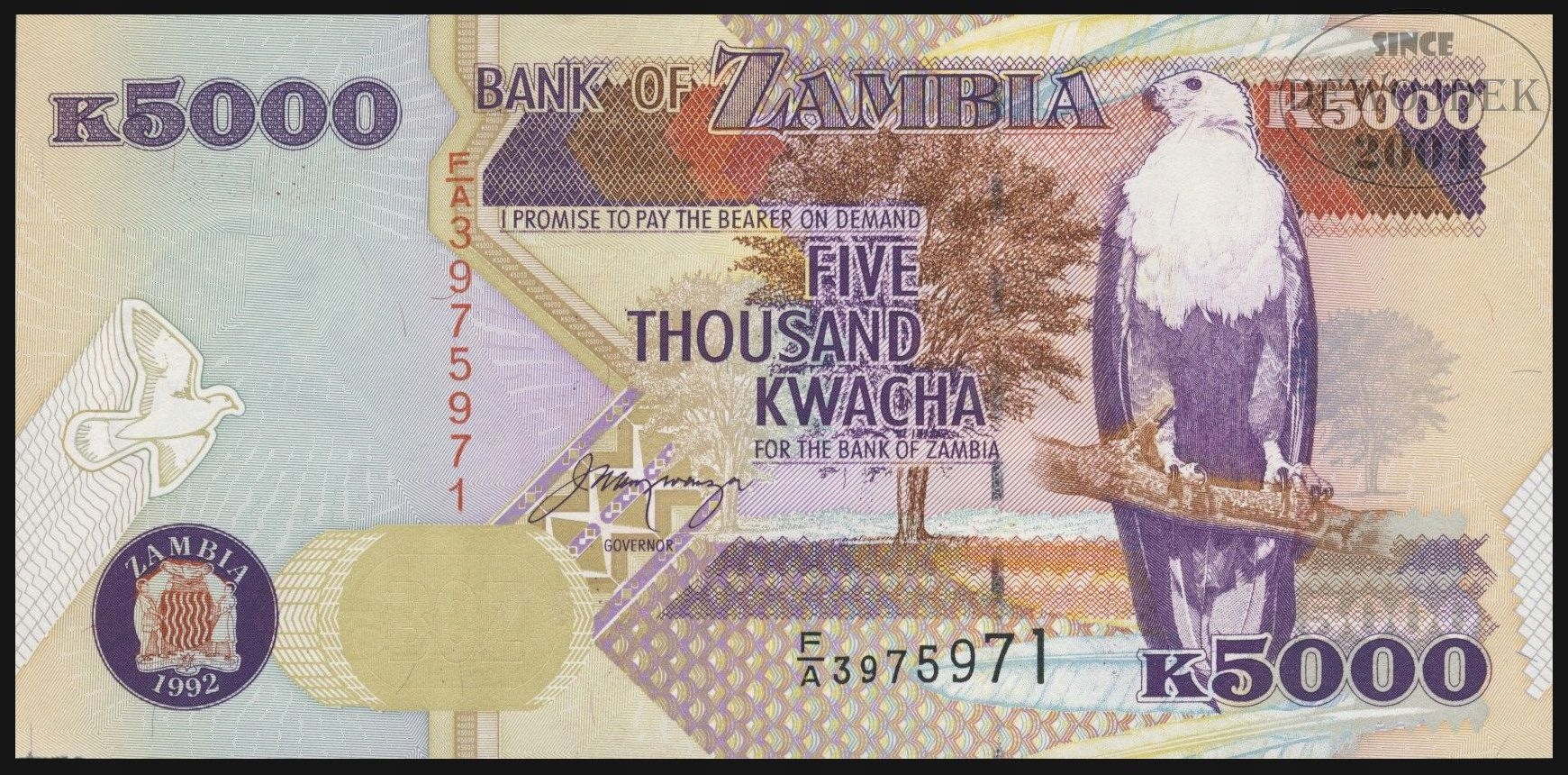 BNB — ЗАМБИЯ 5000 квача 1992 года F/A # ПЕРВАЯ СЕРИЯ A # P41a # UNC