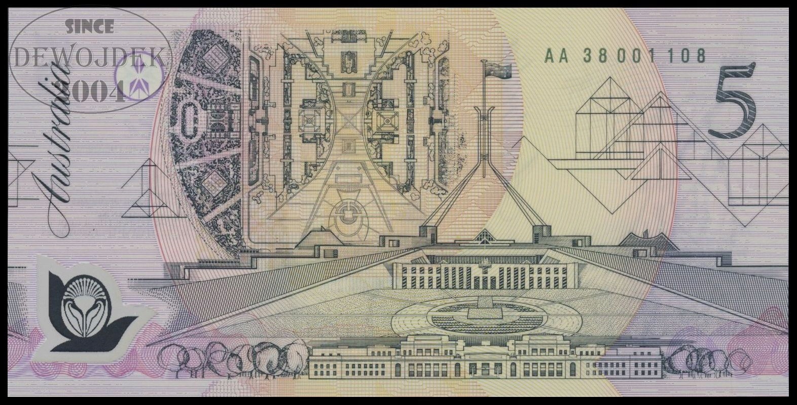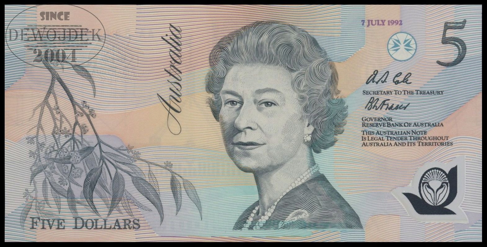 BNE - АВСТРАЛИЯ 5 долларов 1992 года AA 38 # P50b ДАТА # ПОЛИМЕР # UNC