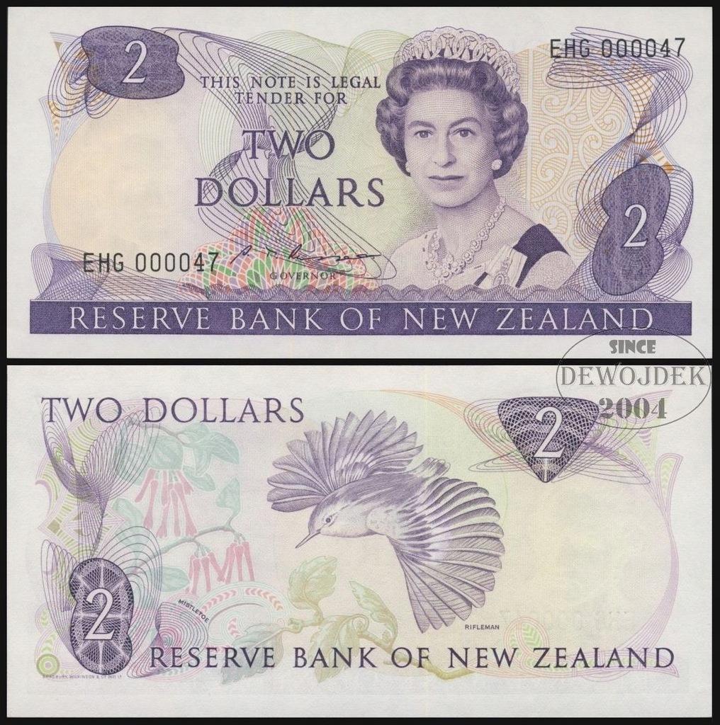 BNE - NOWA ZELANDIA 2 Dollars 1985 EHG 000047 # P170b # NISKI NUMER # UNC