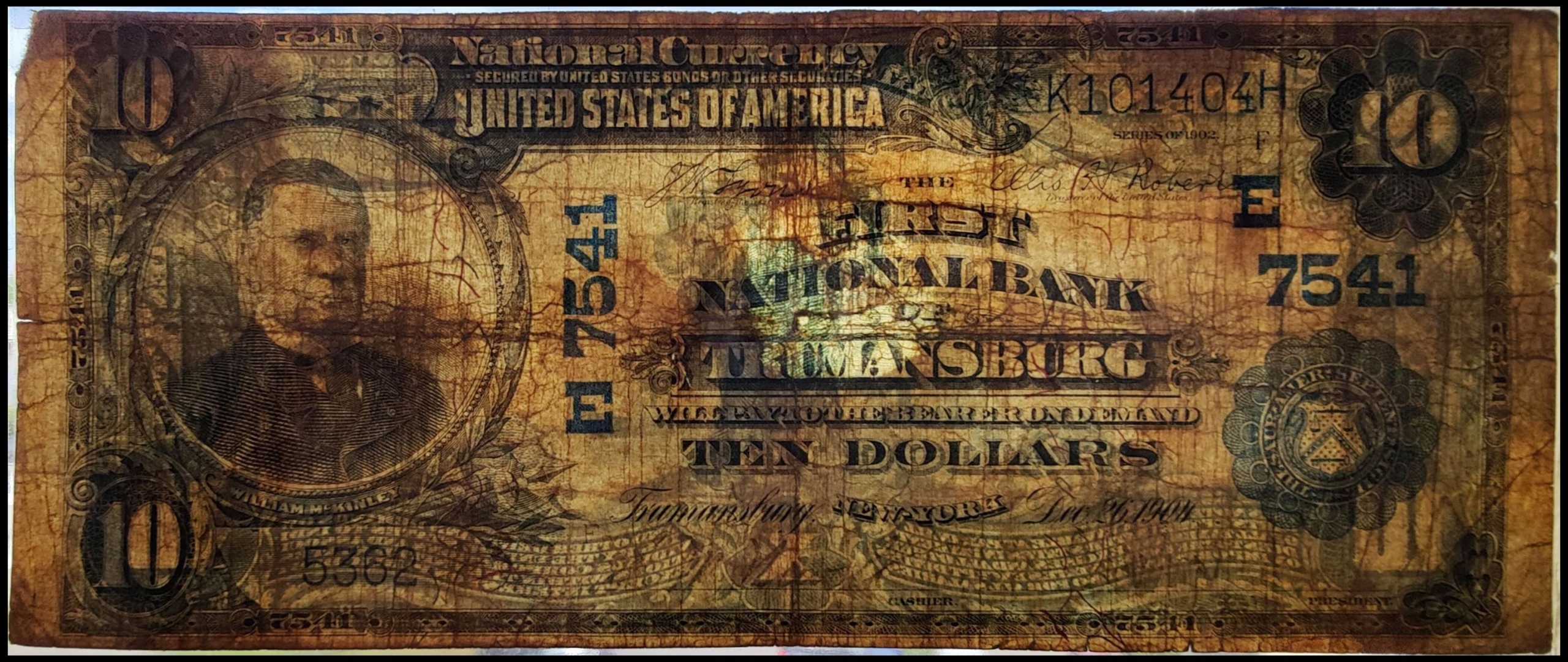 BNG - США 10 долларов 1902 года # НЬЮ-ЙОРК ТРУМАНСБУРГ 7541 # Лайонс Робертс # F-