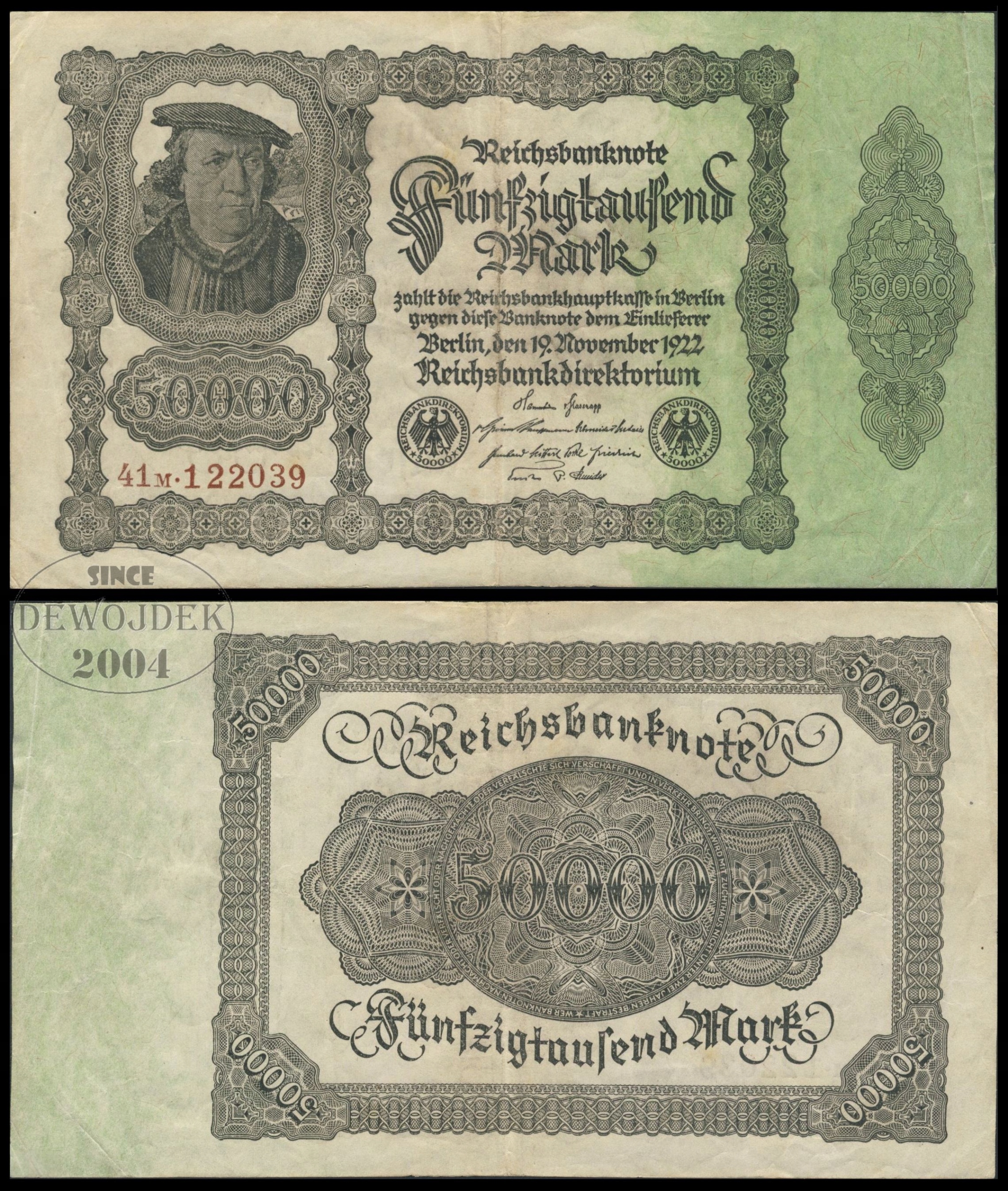 BNN - NIEMCY 50000 Marek 1922 nr 41M.122039 duże cyfry # P79 # 6 cyfr # VF+