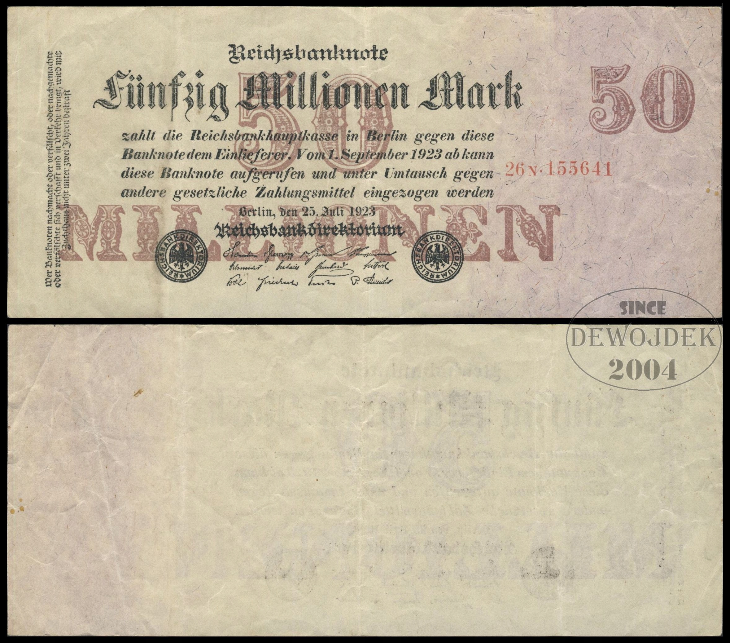 BNN - NIEMCY 50000000 Marek 1923 26N.155641 # P98b 6 cyfr # 50 Milionów VF
