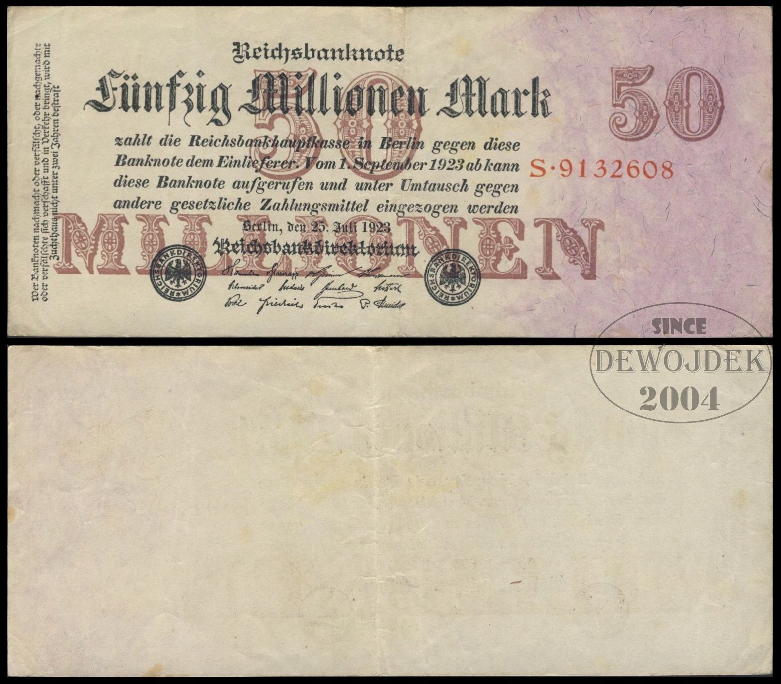 BNN - NIEMCY 50000000 Marek 1923 S.9132608 # P98a 7 cyfr # 50 Milionów # VF