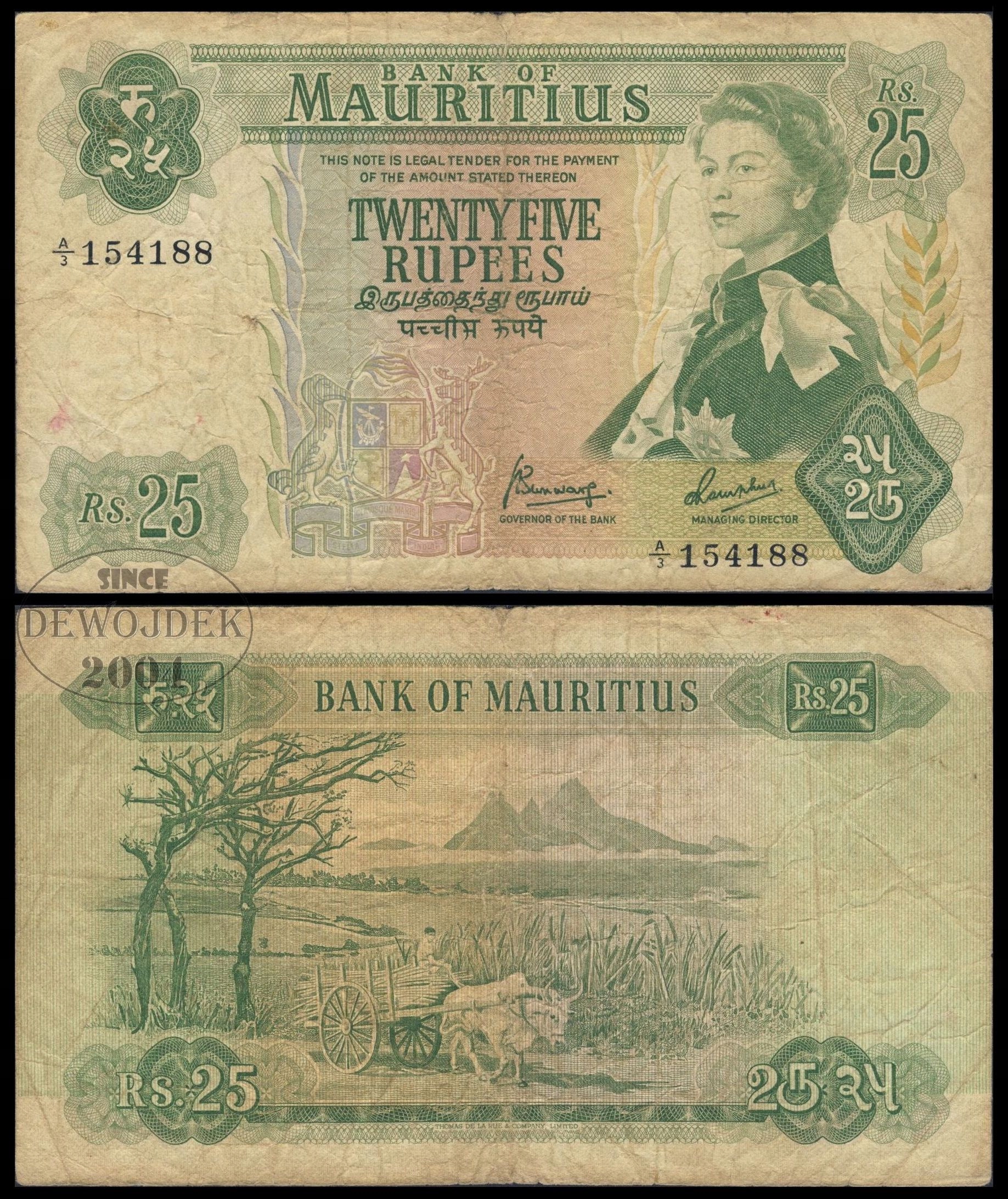BNW - MAURITIUS 25 Rupii 1967 A/3 154188 # P32b # F/VF