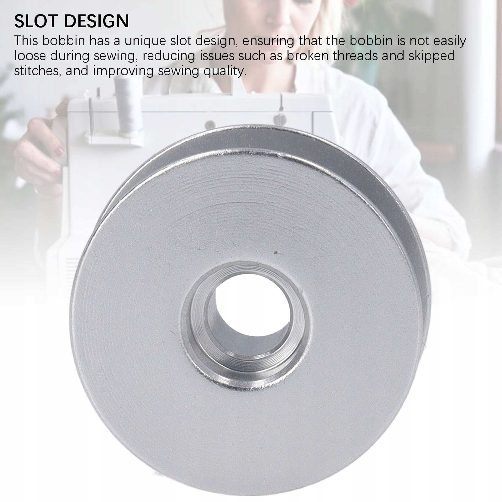 4. КОНСТРУКЦИЯ РАЗЪЕМА: Эта шпулька имеет уникальную конструкцию прорези, которая гарантирует, что шпулька не потеряется во время шитья, уменьшая такие проблемы, как обрыв ниток и пропуск стежков, а также улучшая качество шитья.