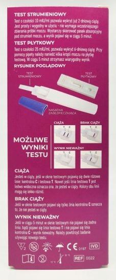 Пластинчатый тест — самый популярный вид теста на беременность в Польше. Провести тест очень просто – необходимо собрать утреннюю мочу в сухую и чистую емкость, а затем нанести 3 капли – с помощью прилагаемой стерильной пипетки – на тестовую пластинку.
