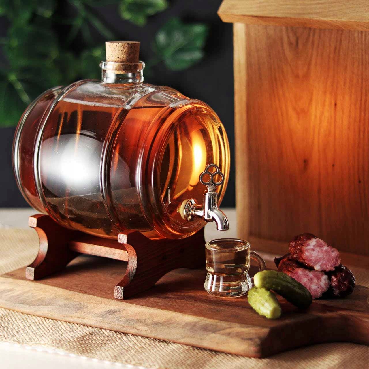 Красивая бесцветная бочка с краном емкостью 5 л для наливок, самогона и других спиртных напитков
