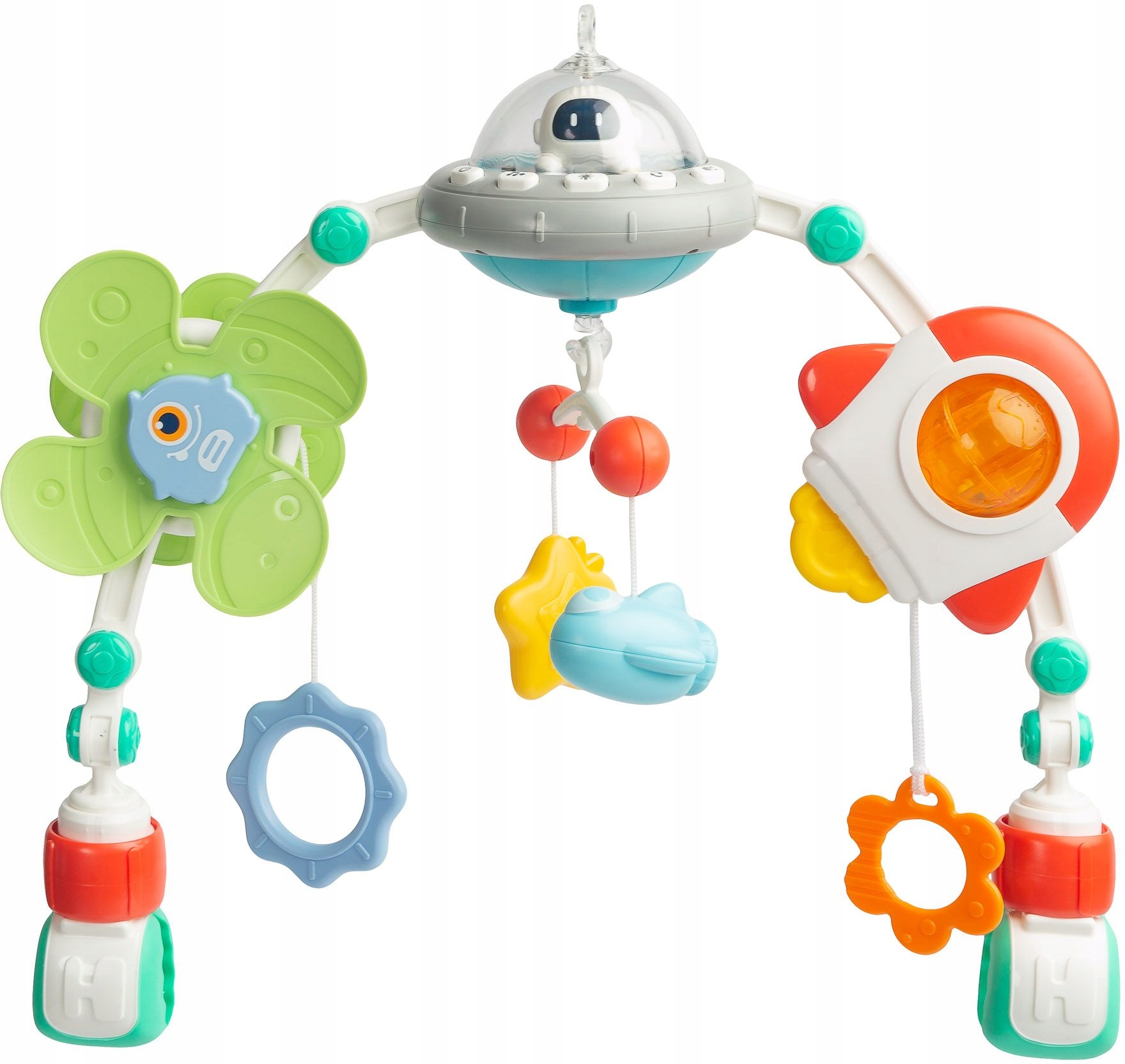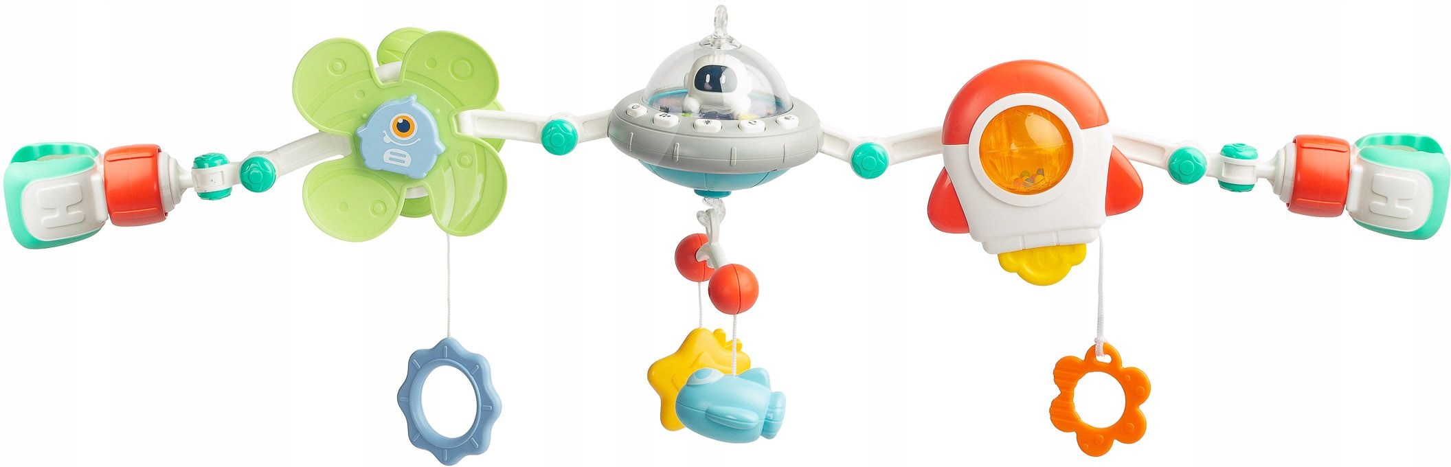 Коляска «Космос» от Toyz подарит вашему малышу массу удовольствия и сенсорное развитие. В нем есть множество игрушек, разработанных для развития движений и любознательности ребенка. Обращает на себя внимание светящаяся музыкальная панель на батарейках с вращающейся каруселью, которая, проигрывая нежные мелодии, поможет малышу заснуть. Благодаря гибкому и гибкому креплению и защелкам повязку «Космос» можно легко повесить или прикрепить не только к коляске, но и практически в любом месте (автокресло, качалка, шезлонг, стульчик для кормления или кроватка).