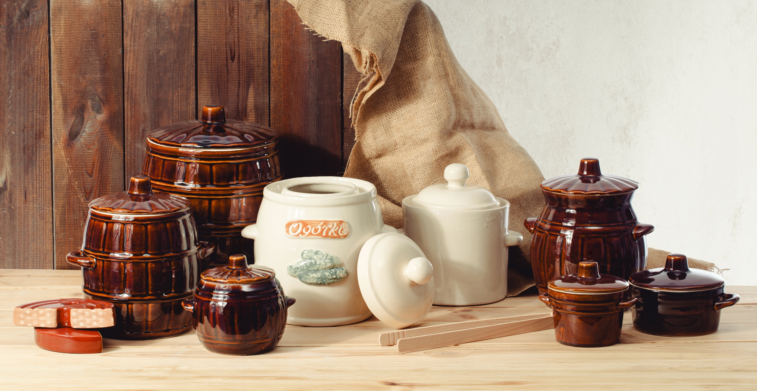 ✔ керамовую посуду - она нечувствительна к кислотам и солью - присутствует в процессе маринованного