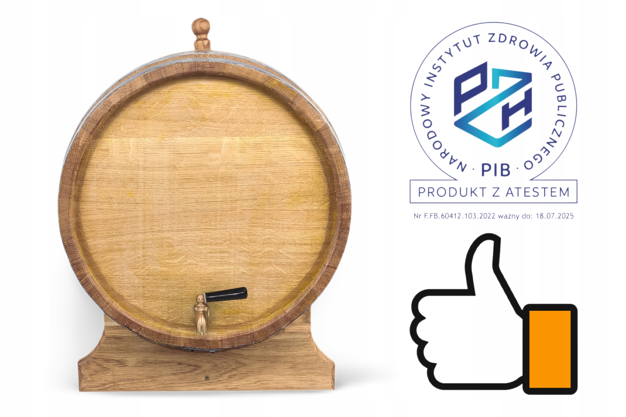 - Бочка имеет латунный кран, позволяющий легко наливать напиток.