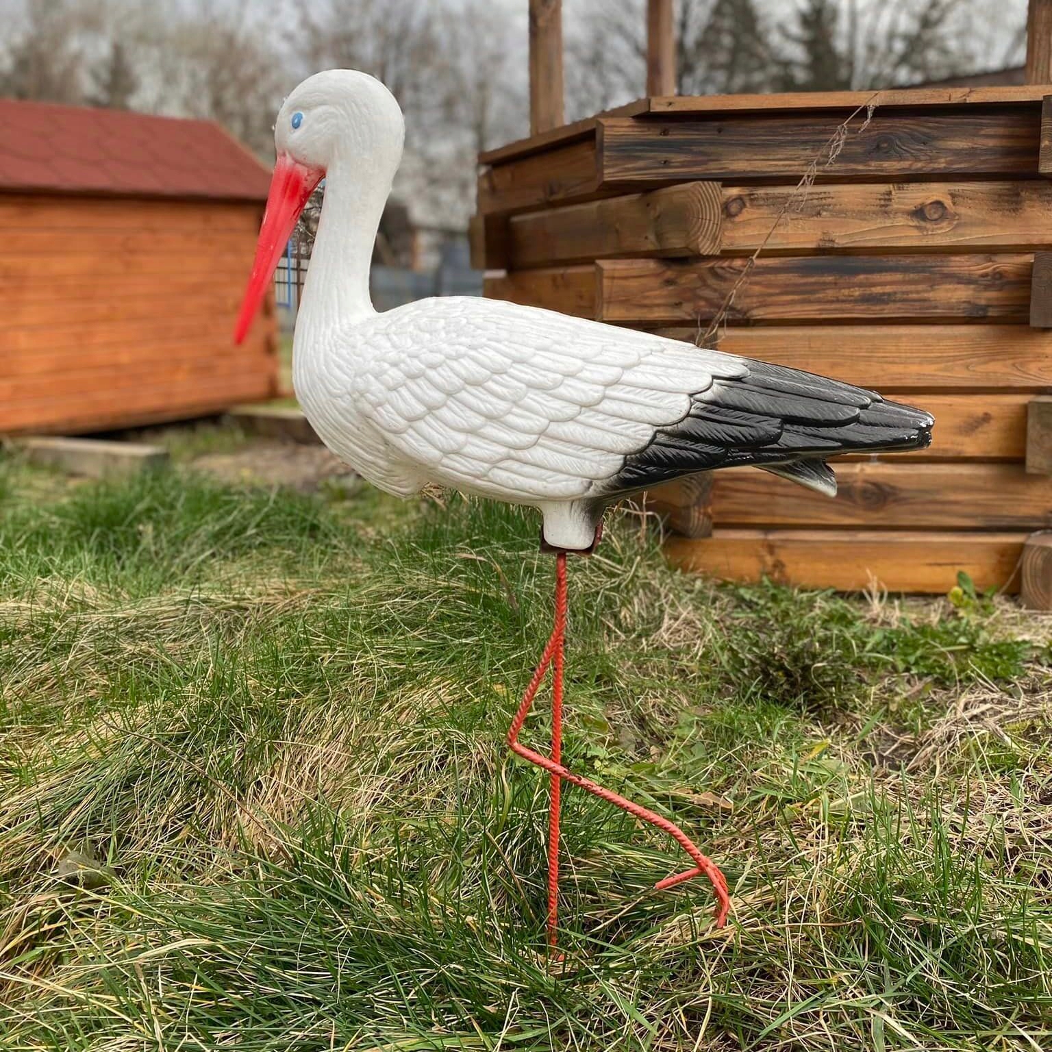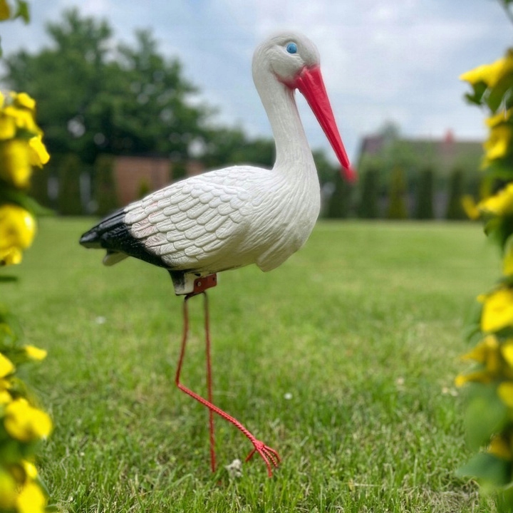 BOCIAN OGRODOWY STOJĄCY FIGURKA DO OGRODU PTAK WBIJANY DUŻY JIKO OZDOBA