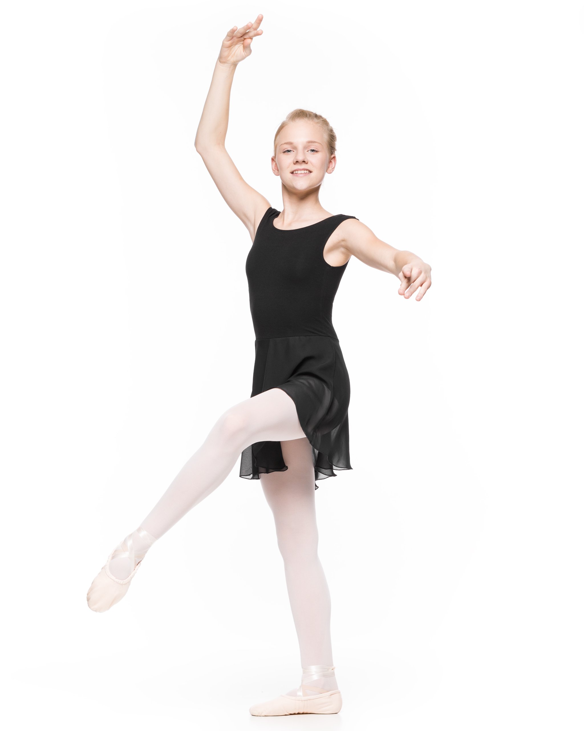Классический балетный наряд с шифоновой, ассиметричной туникой, вшитой в талию, идеально подходит для занятий танцами.