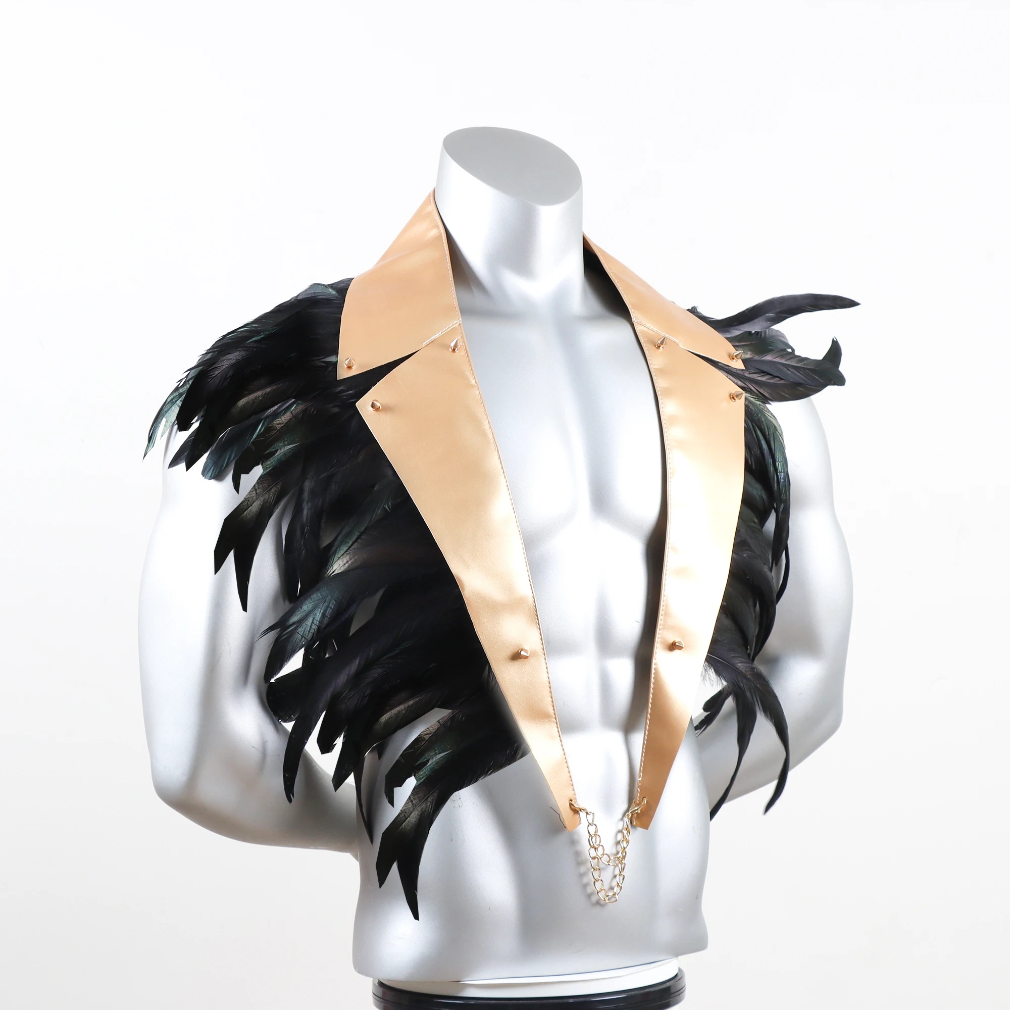 боди БДСМ гей-жилет с перьями золотой черный эротическая вечеринка