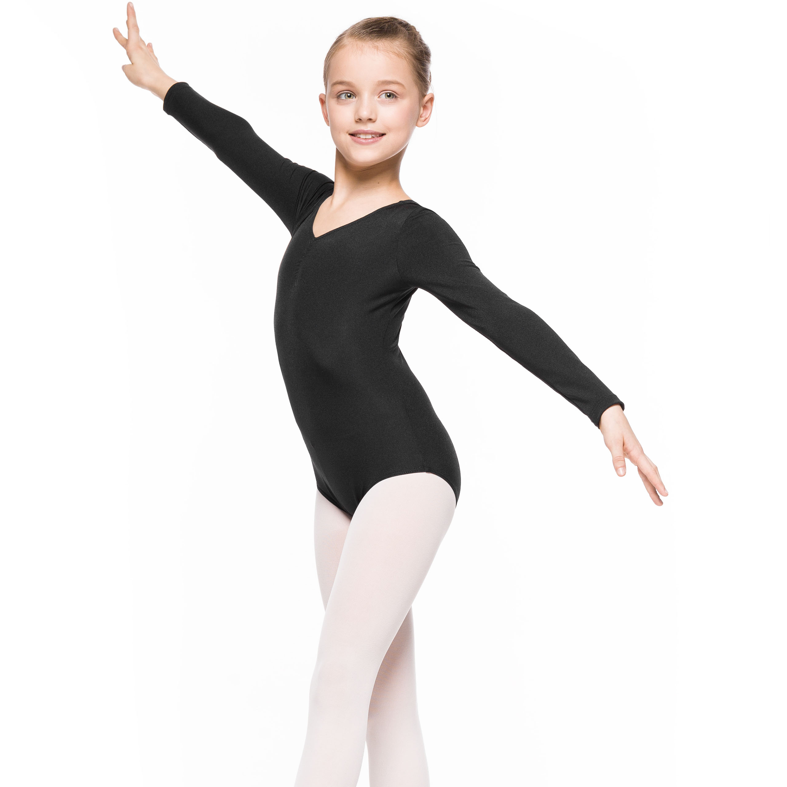 Классический танцевальный костюм с длинными рукавами, идеально подходящий для балета, гимнастики и ритмики.