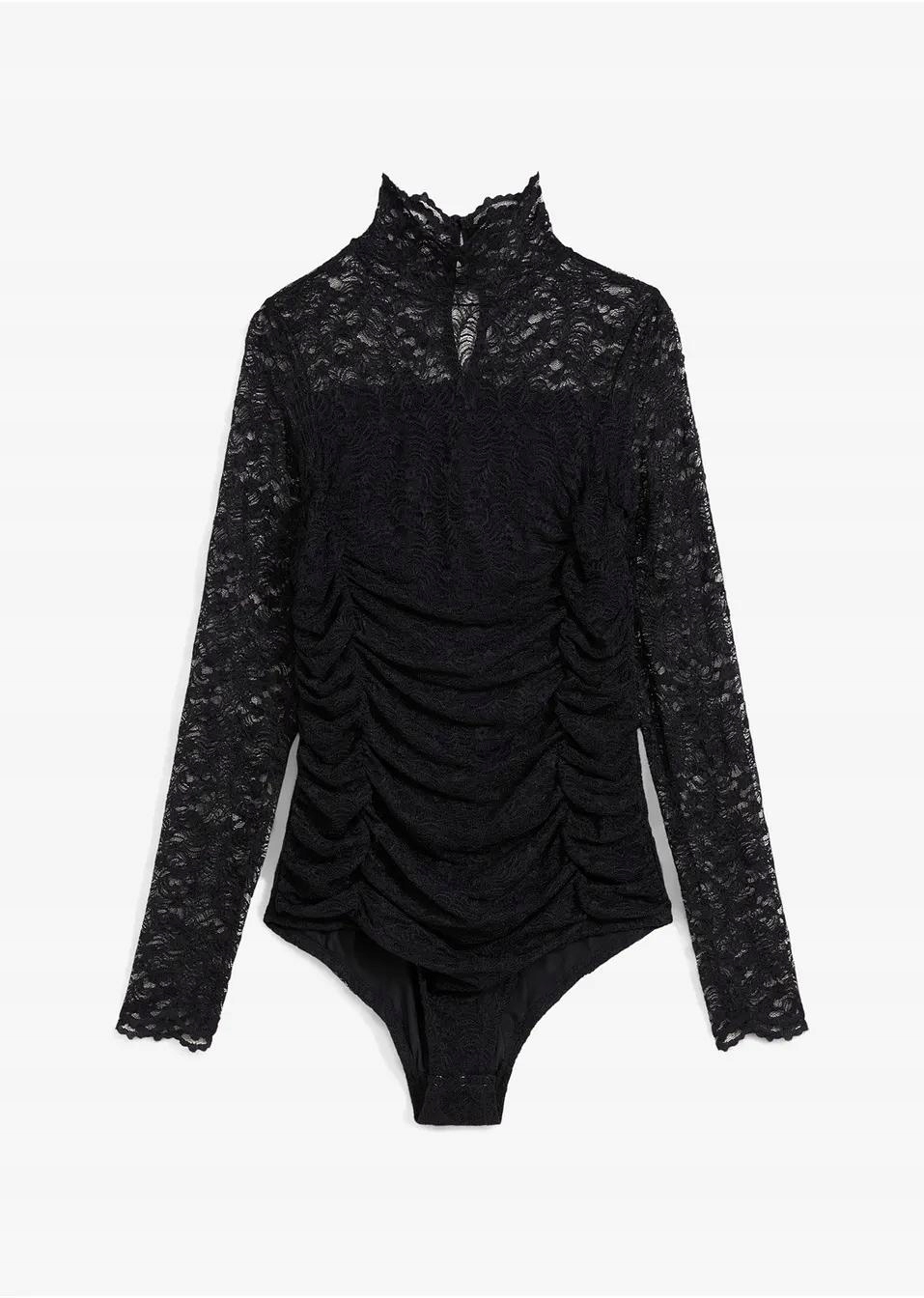 БОДИ С КРУЖЕВОМ И ДЛИННЫМИ РУКАВАМИ, ЧЕРНЫЙ 2F0G26 Bonprix 48/50