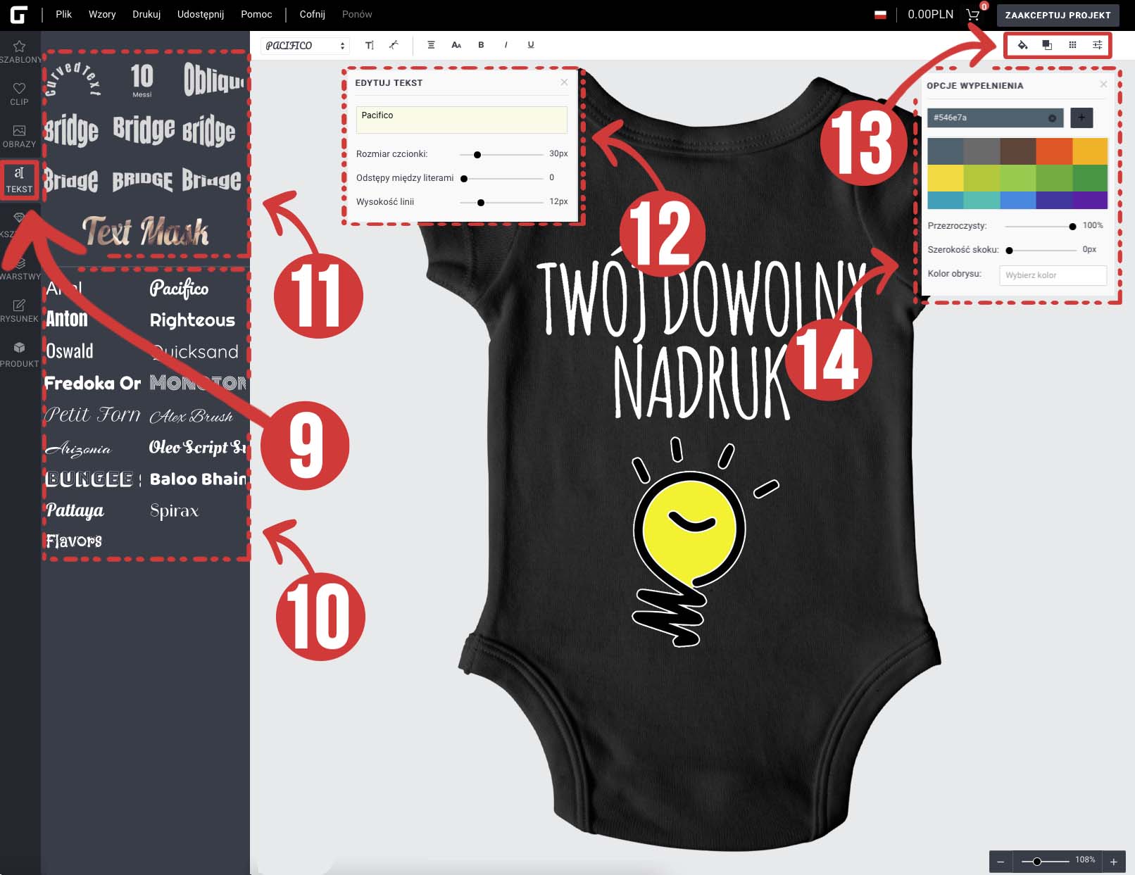 9️⃣ (9) - Конечно же, базовые функции, такие как изменение цвета текста, выделение жирным шрифтом, курсив, подчеркивание, переход с заглавных букв на строчные. буквы и наоборот одной кнопкой мыши, а изменение интервала и других параметров надписей возможно одной кнопкой мыши. Очень важно, чтобы в нашем редакторе все шрифты были польскими символами (ą,ę,ź,ć,ó)