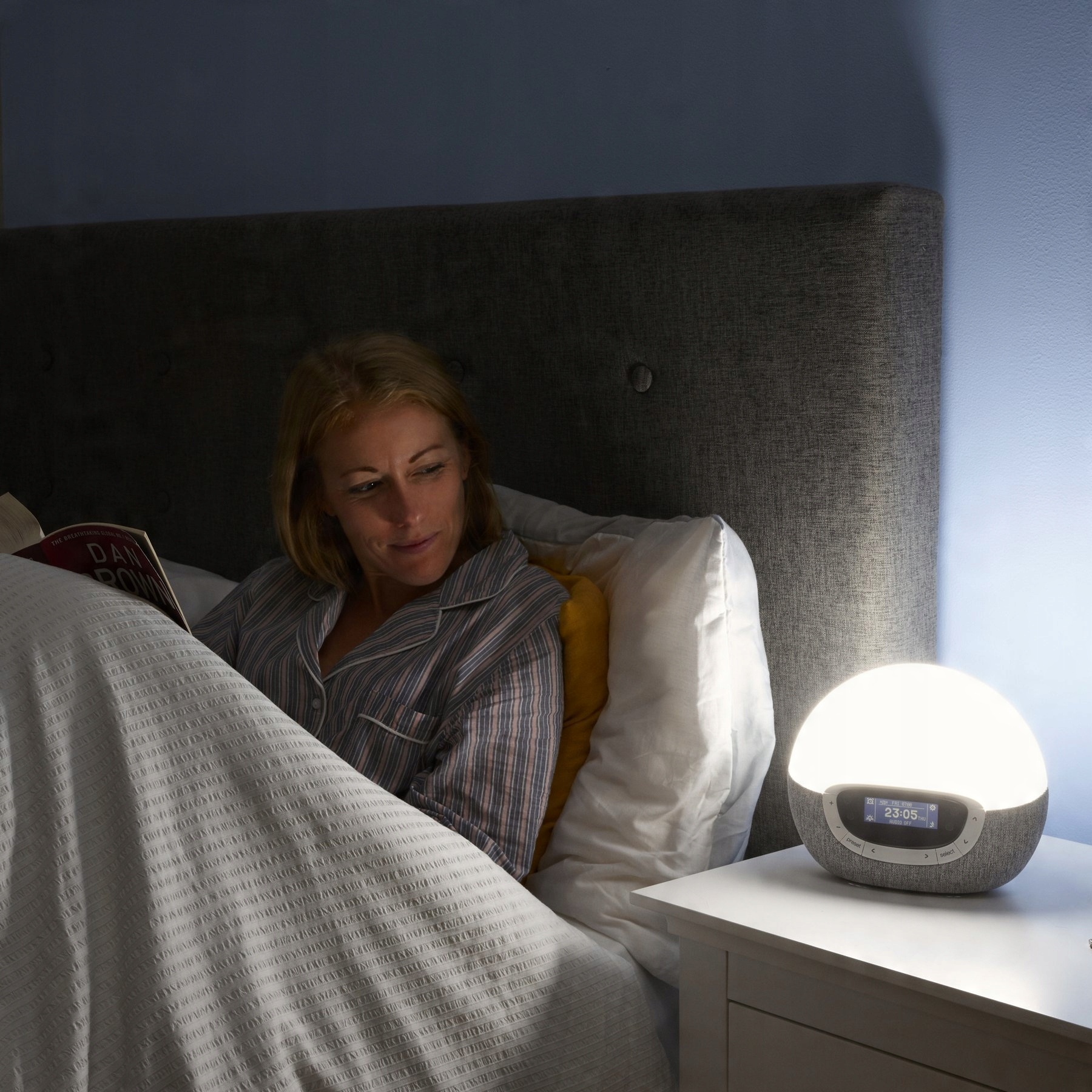 Bodyclock Shine 300 — это полностью регулируемый светильник для спальни, яркий для чтения или приглушенный, идеально подходящий для отдыха. Когда в комнате темнеет, экран устройства, оснащенный специальным датчиком, также тускнеет.