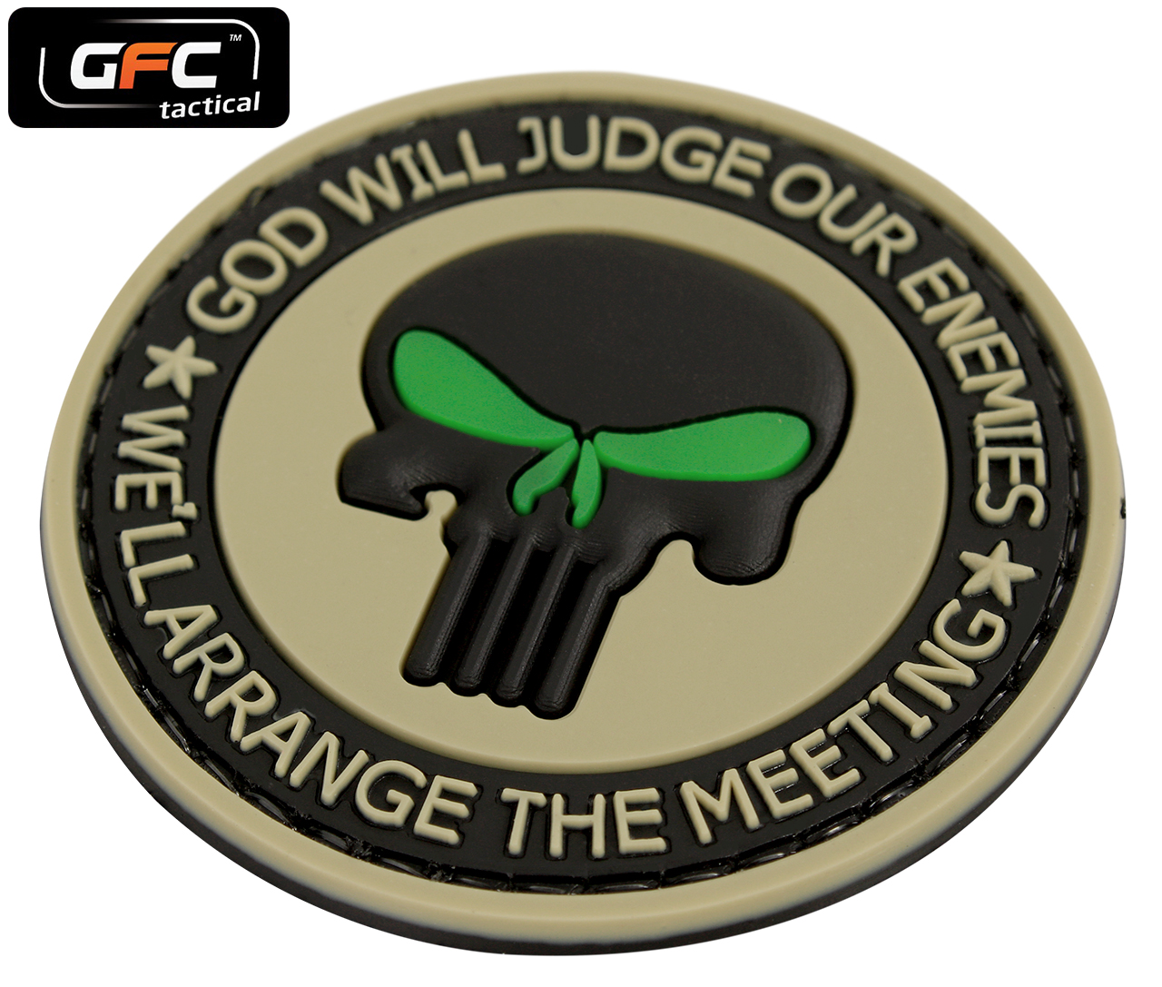 Из ПВХ, трехмерная нашивка БОГ СУДИТ НАШИХ ВРАГОВ от польского бренда GFC Tactical.