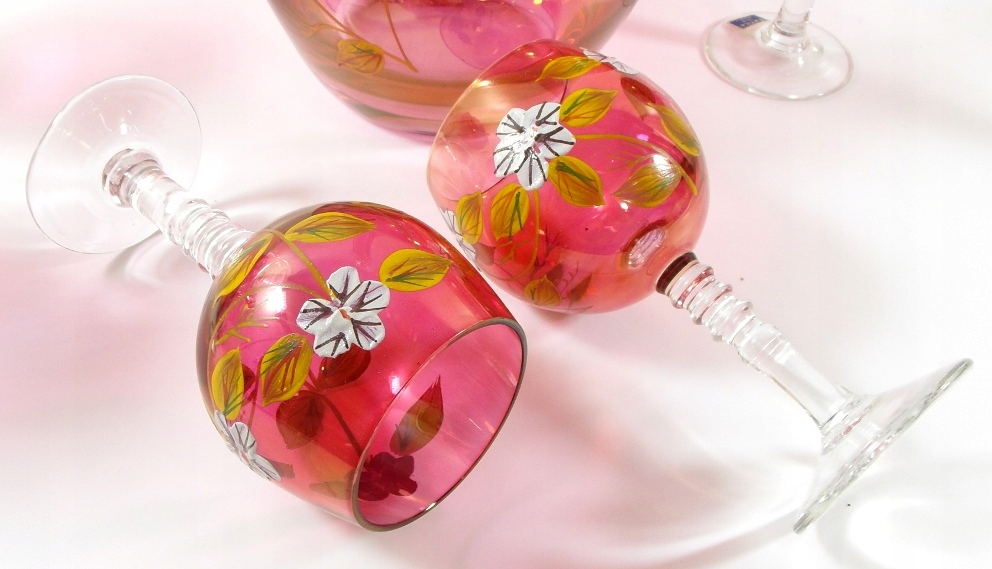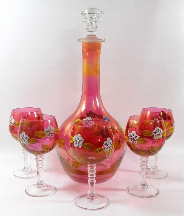 БОГЕМА - ГРАФИН + КУЛЯНИ 5 шт. - ВИНО - красивий набір, декорований вручну