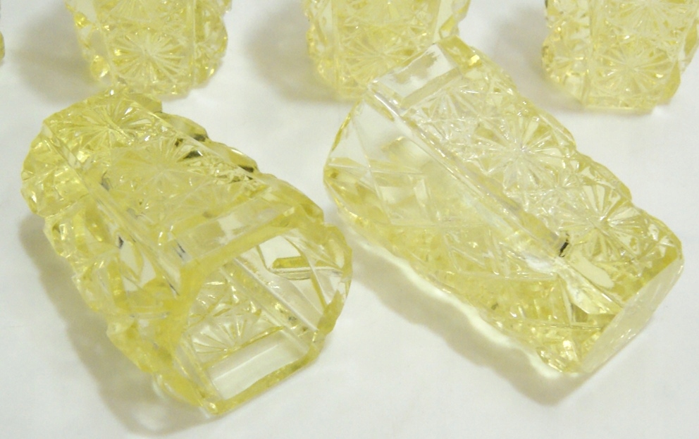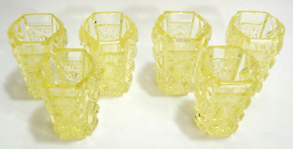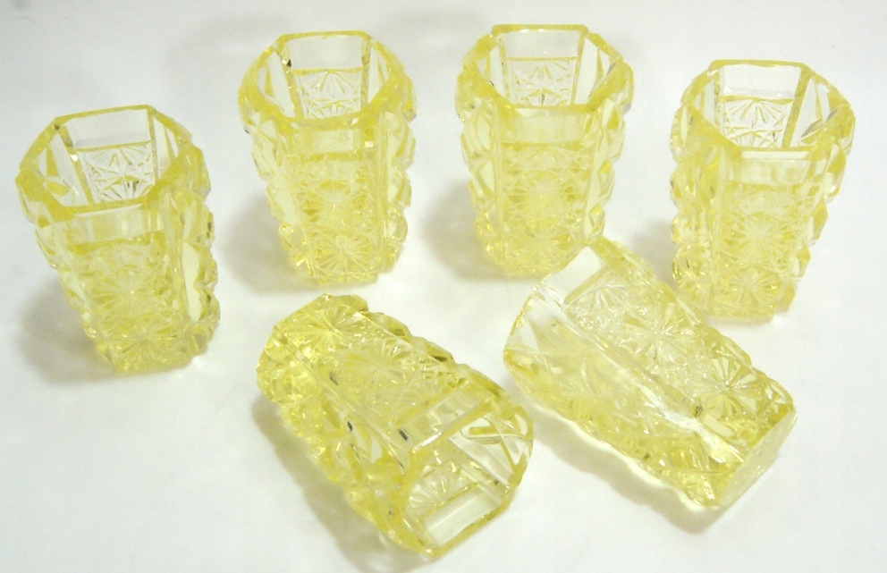 Красивые старинные бокалы - набор из 6 штук, выполненные из хрусталя лимонного цвета. Массивное цветное стекло. Поверхностная обработка очков.