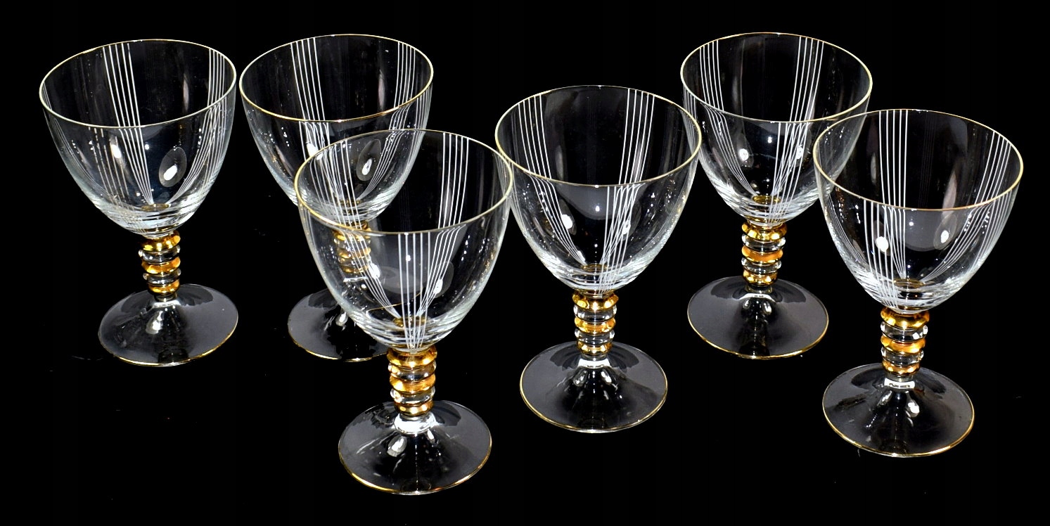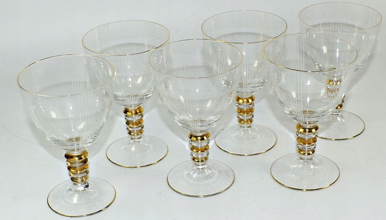 Старый набор 6 Старый или старики Стакалы из бесцветного хрустального стекла -для красивых, толстых ног. Чаша стаканов, интересно украшенных, позолоченных, также позолочен.