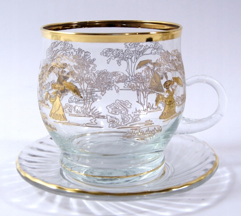 Богемия- Красивая, старые, хрустальные очки- Золотые леди
