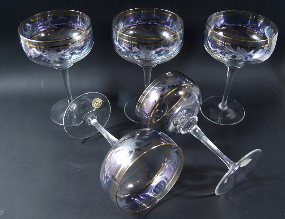 БОГЕМИЯ - КРАСИВЫЕ СТАРЫЕ БОКАЛЫ ДЛЯ ВИНА - ОБРЕЗКА - набор из 5 шт.