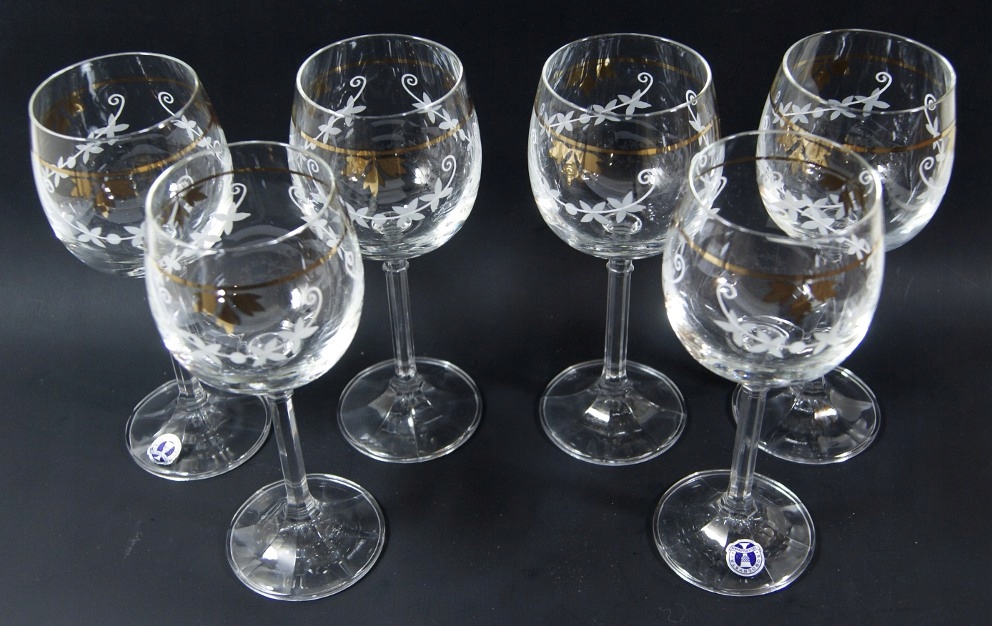 БОГЕМИЯ - КРАСИВЫЕ СТАРЫЕ ХРУСТАЛЬНЫЕ БОКАЛЫ - вино - сервиз. 6 шт,