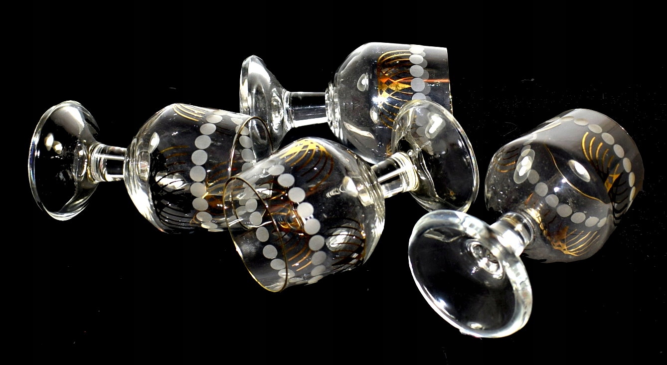 old set 4 Старый или старые люди Стакалы из бесцветного хрустального стекла -для красивых, толстых ног. Стакан, интересно украшенные и отшлифованные. Старое стекло, сделанное из богемии