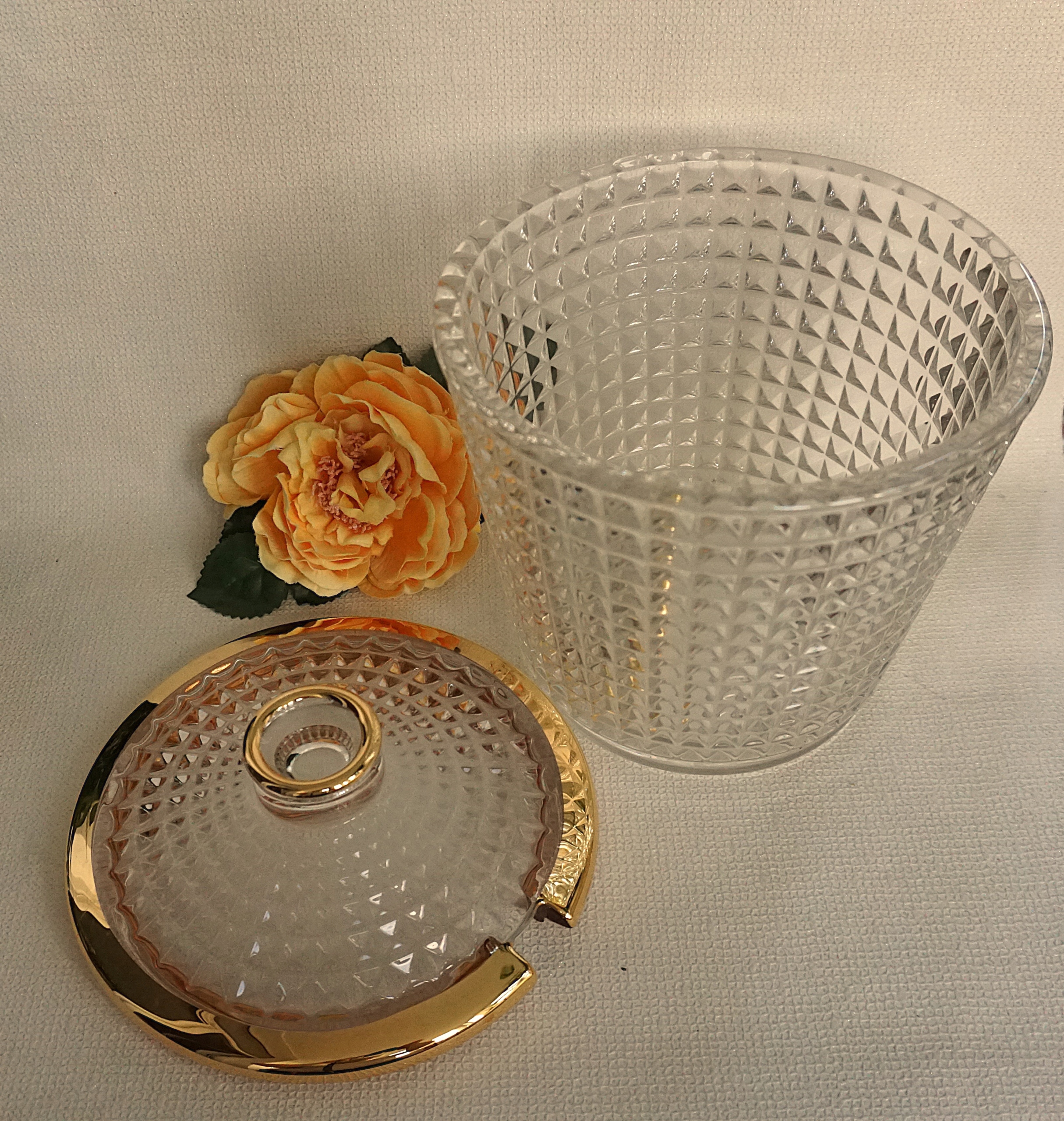 Очень декоративный объект, чудесно расщепляет свет, крышку, оборудованная удобной, наземной ручкой. В крышке отверстие для ложки вазы.