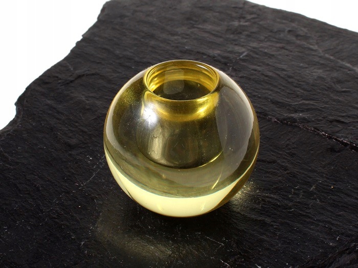 Одиночный подсвечник в форме шара. Изготовлен из натриевого стекла лимонного цвета. Предположительно родом из Чехословакии. 2-я половина 20 век